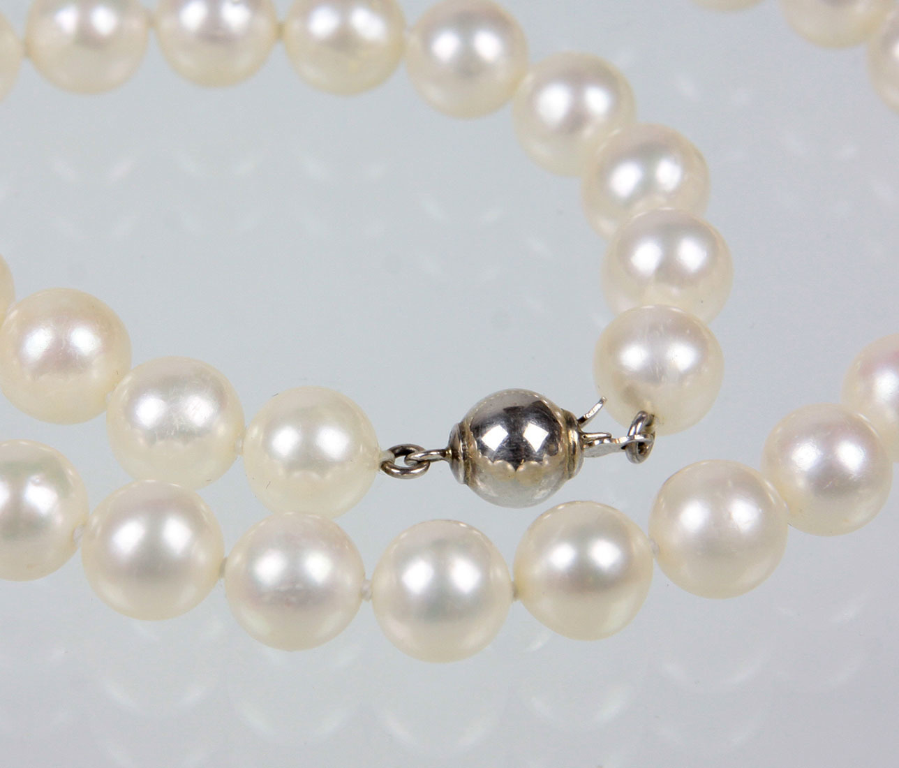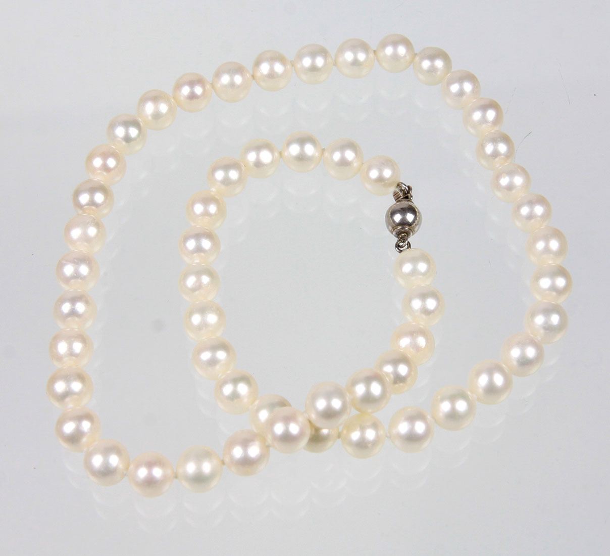 916864. PÄRLHALSBAND, ÄKTA ODLADE PÄRLOR, SILVER 925.