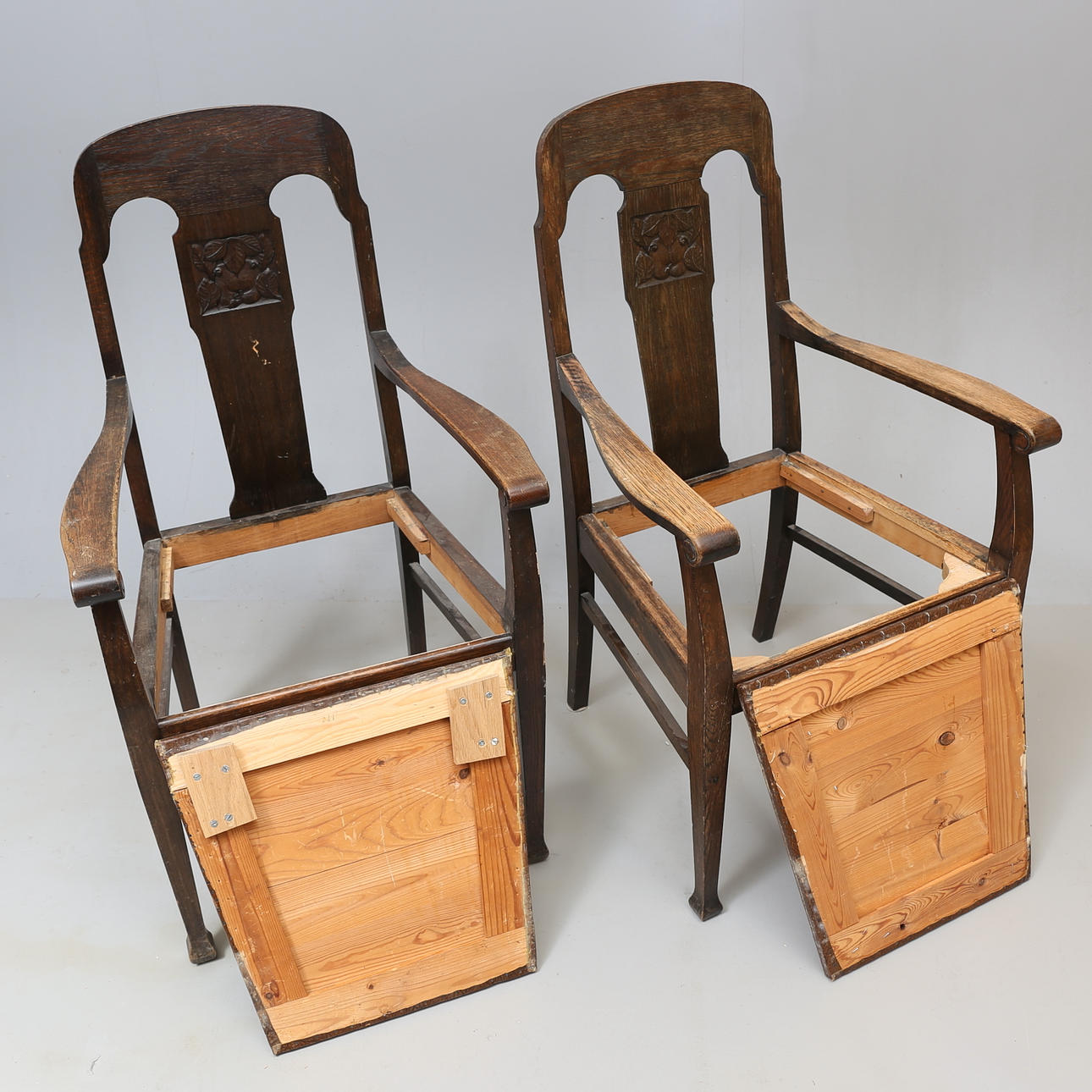 Karmstolar med skuren dekor, modell äpplet, löstagbar sits höjd 106. sitthöjd 45.