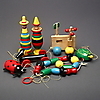 Bland annat dragleksaker i form av hund och nyckelpiga.