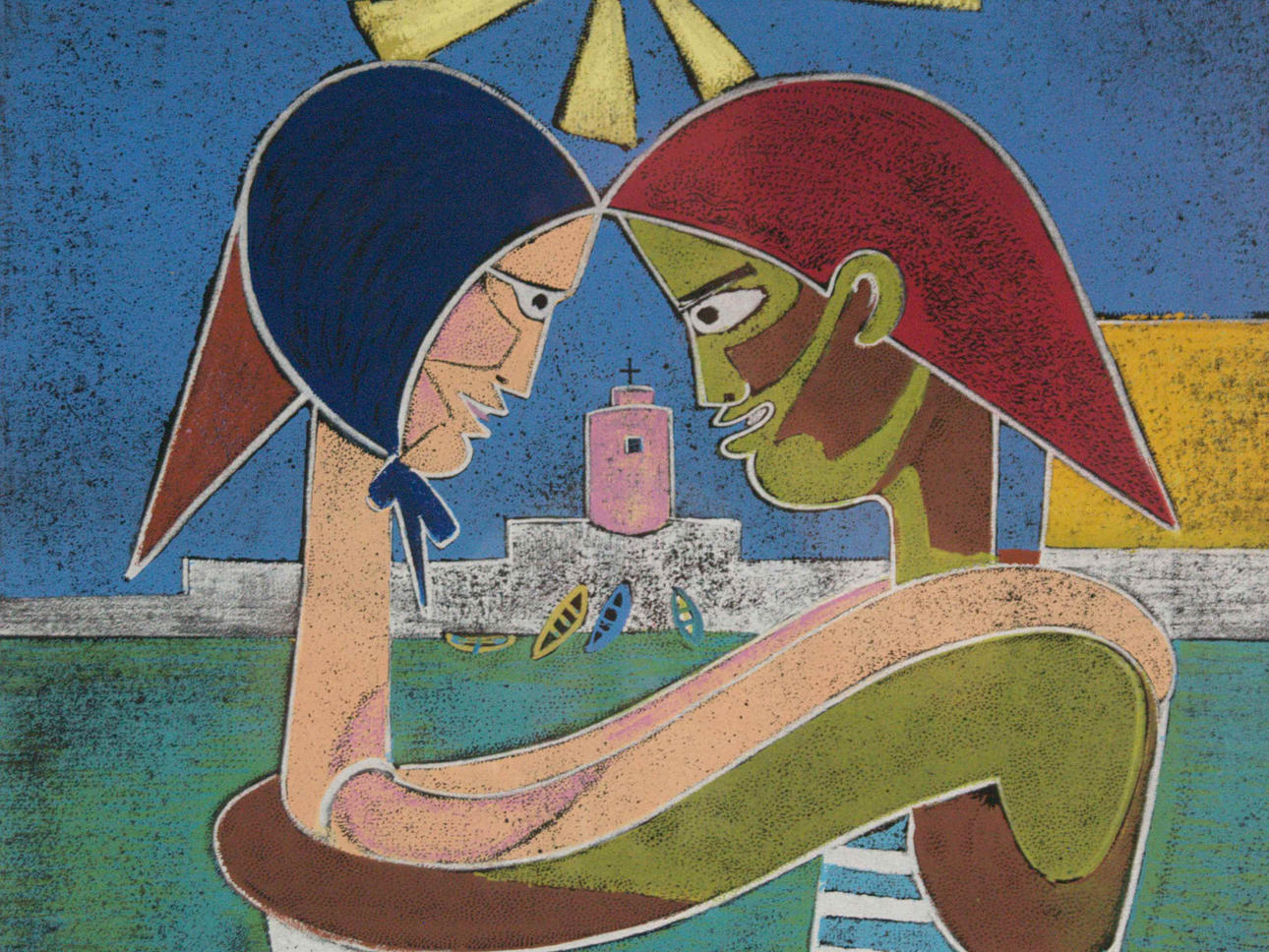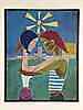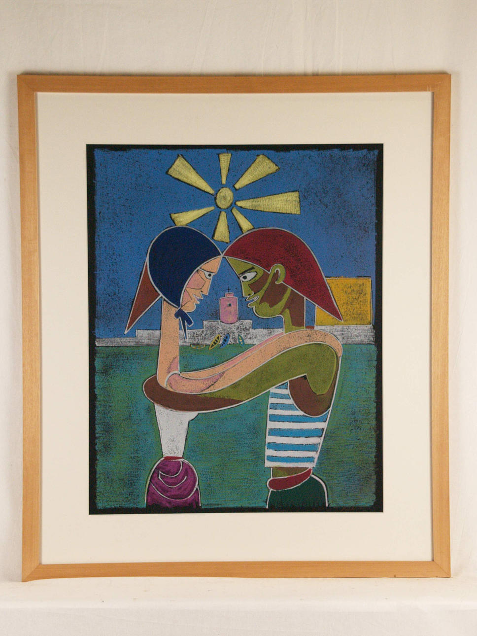 Cocteau, Jean (1889-1963) - ”Couple sur un plage”, färglitografi ur serien ”Nice et la Côte d'Azur”, 1961, upplaga: 300 exemplar, tryck: Atelier Mourlot,