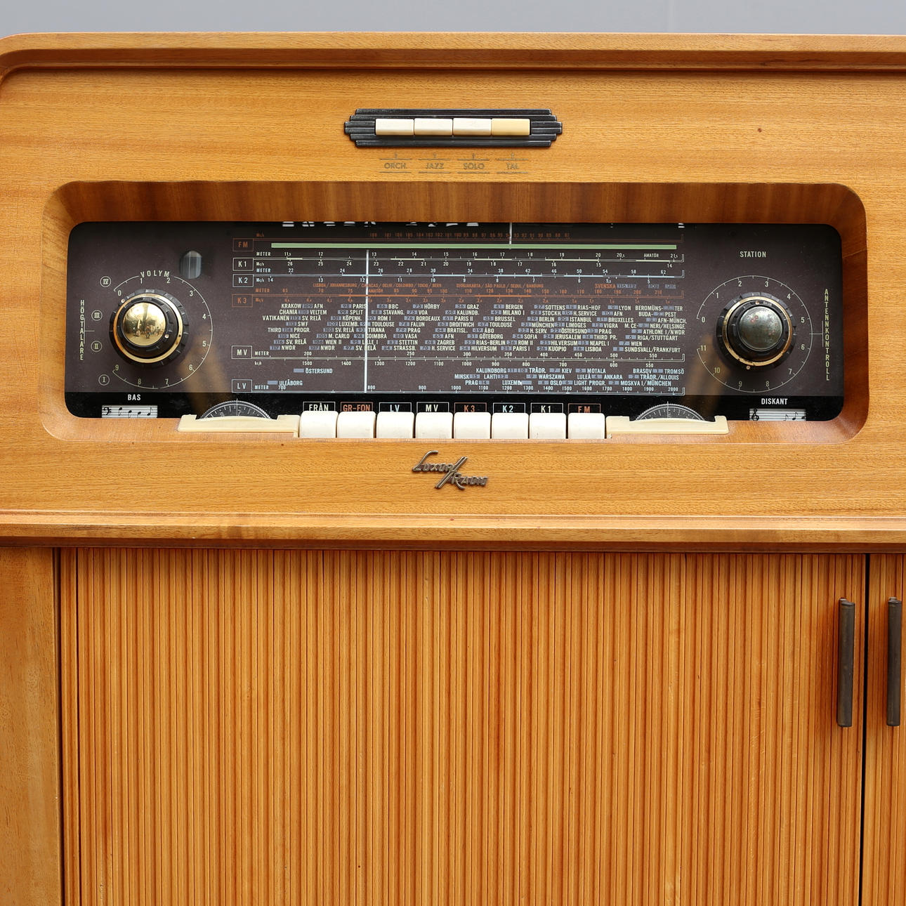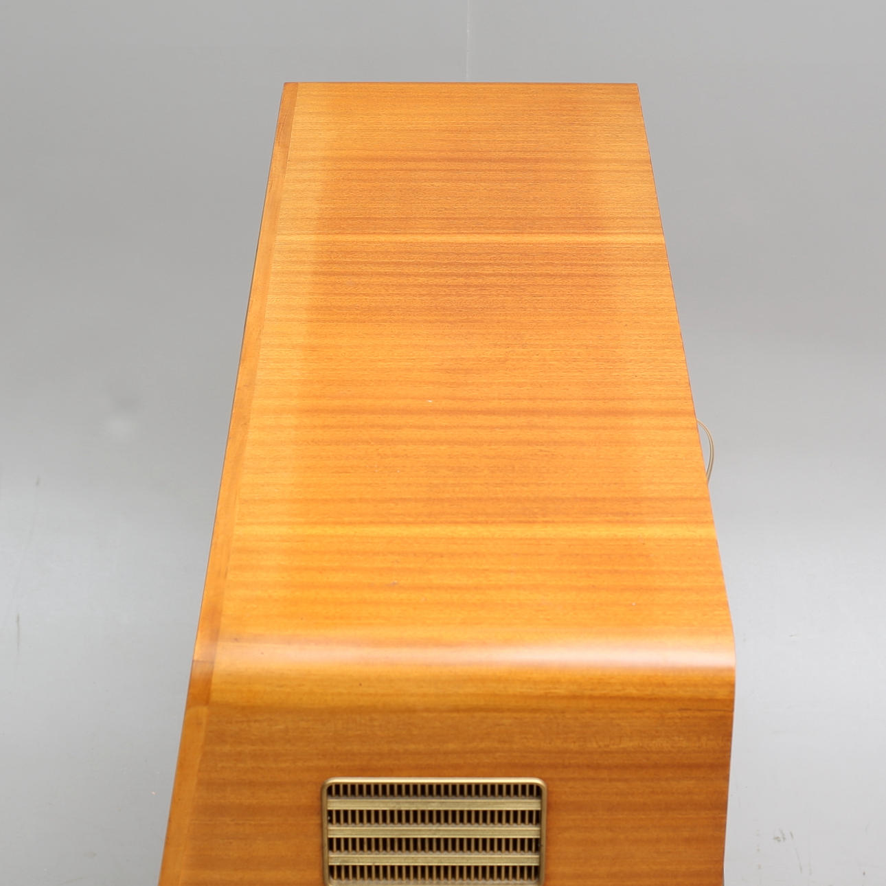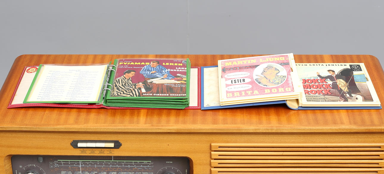 Bredd 108, djup 39, höjd 86 cm. 2 album med singlar/EP-skivor medföljer.