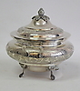 Graverade blommönster,höjd ca. 19, bredd med handtag 22 centimeter 830/1000 silver, kattfotsmärkt.