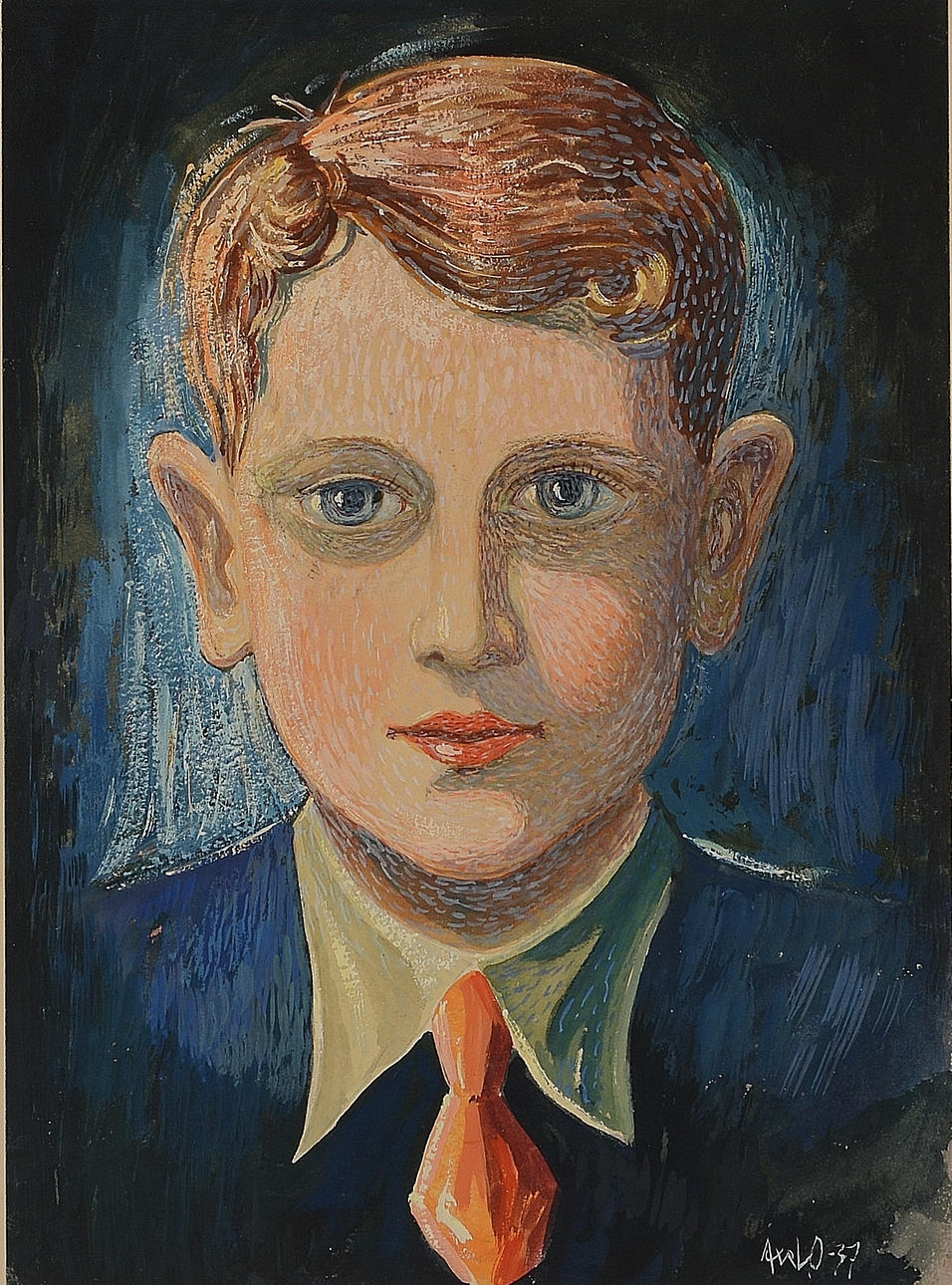 Pojkporträtt. Signerad Axel. O samt daterad -37. 32x23 cm.