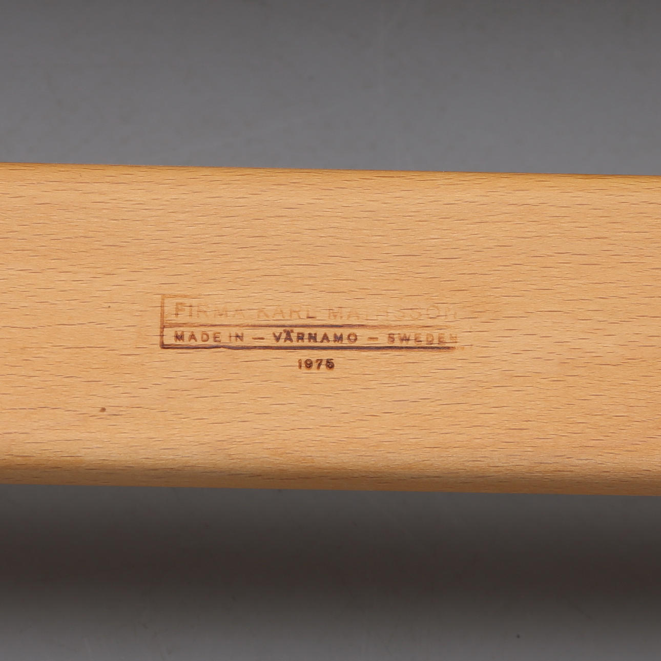 Stämpel- och etikettmärkt, producerad av firma Karl Mathsson 1975, linnegjord på stomme av böjtra.