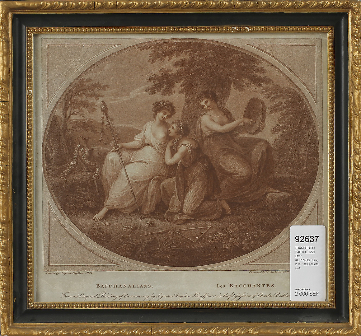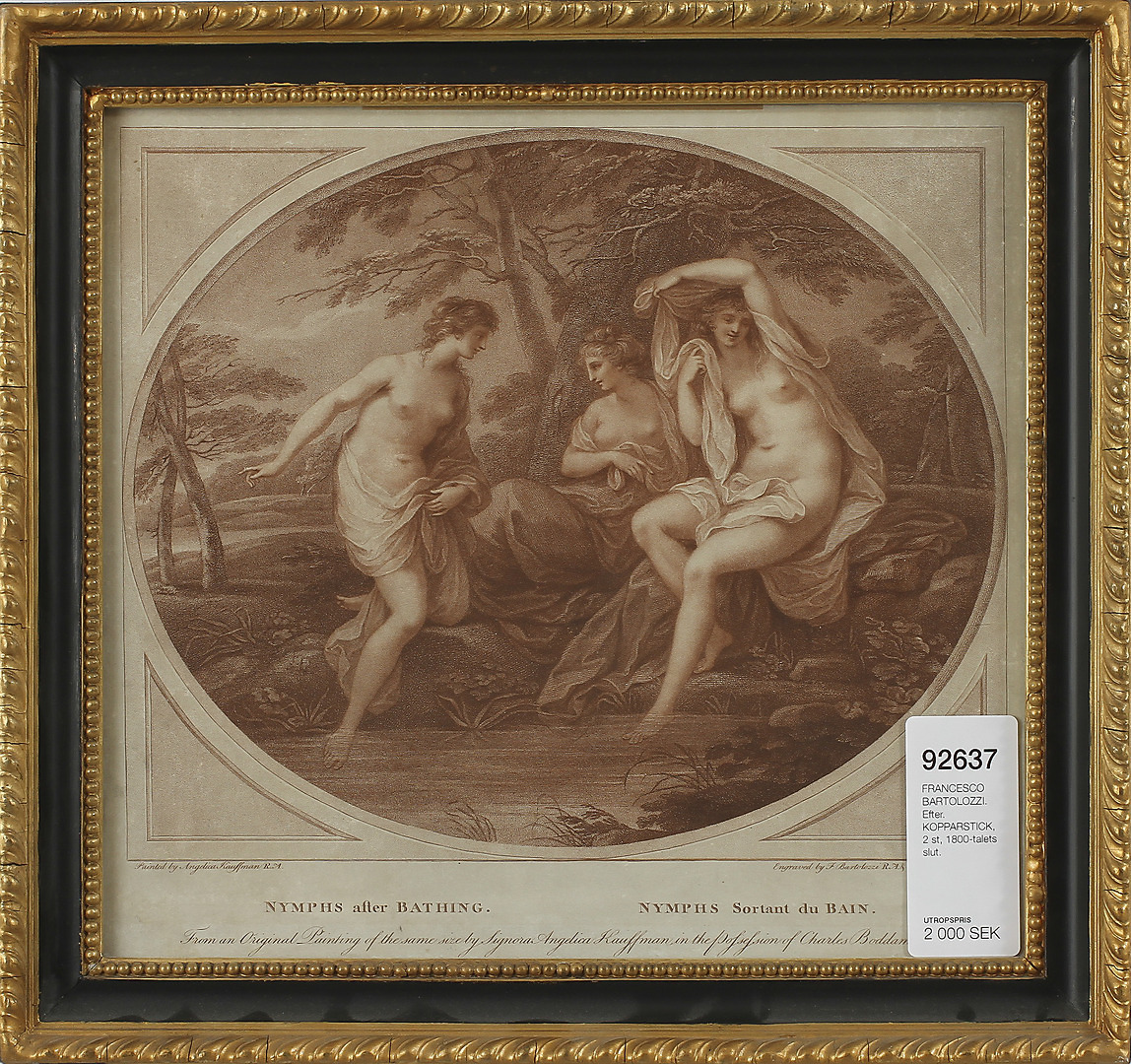 92637. FRANCESCO BARTOLOZZI. EFTER. Kopparstick, 2 st, 1800-talets slut.