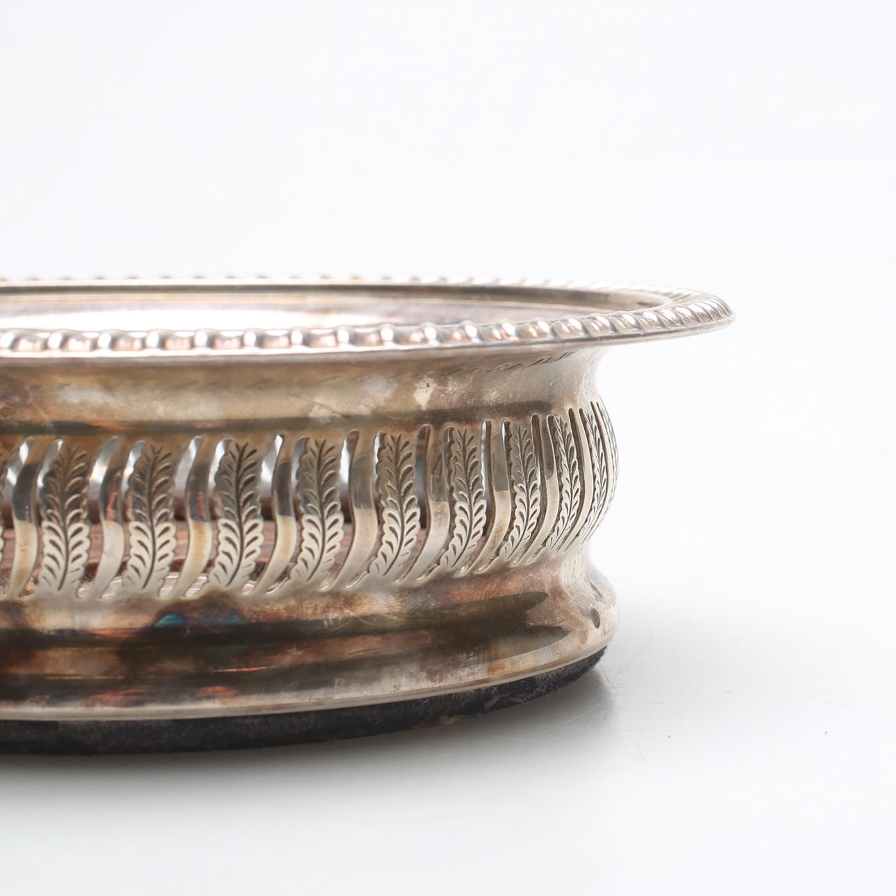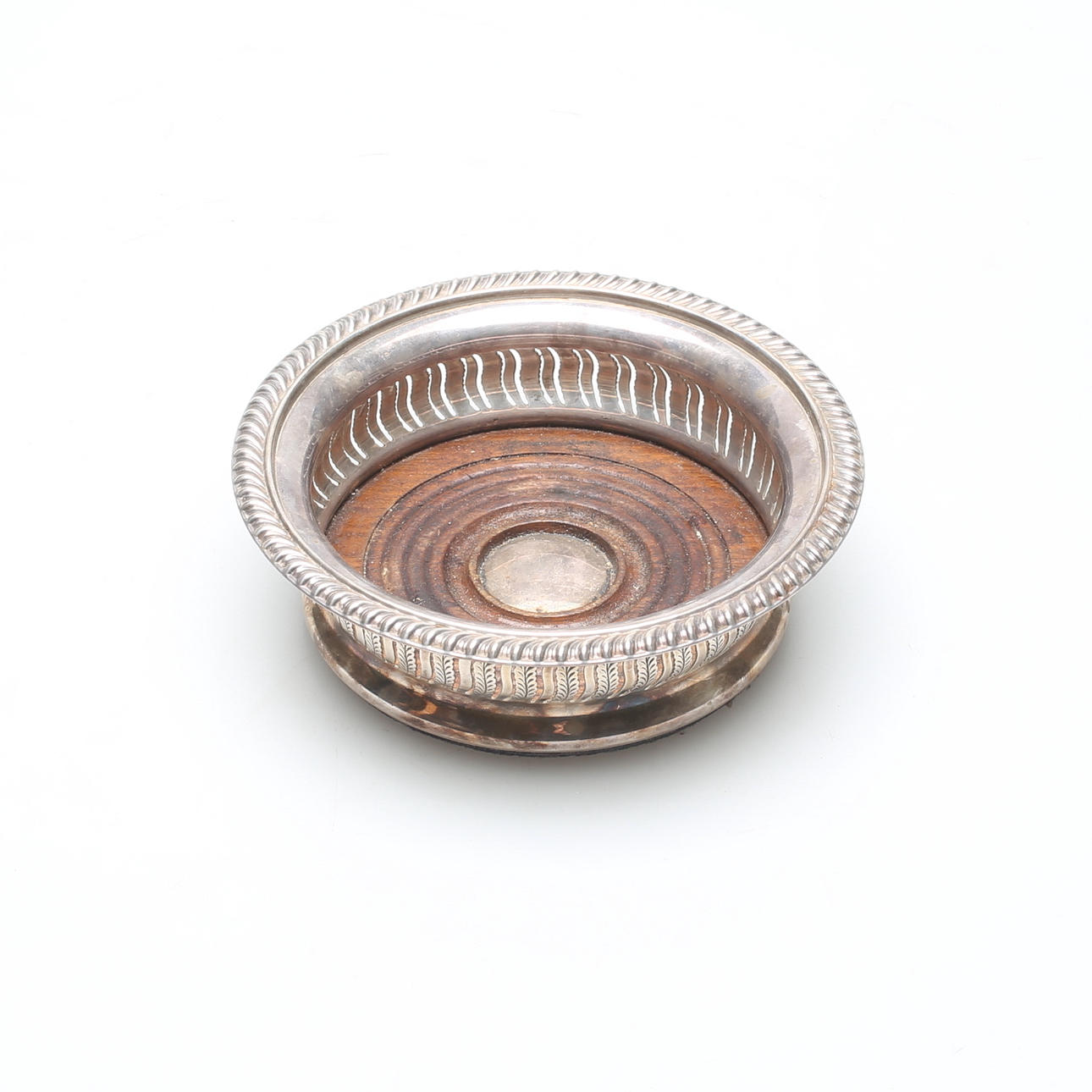 FLASKCOASTER, nysilver och trä, Barker-Ellis, England.