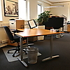Skrivbord på benställning i metall, skiva i bokfanér. Hörn vänster. IKEA