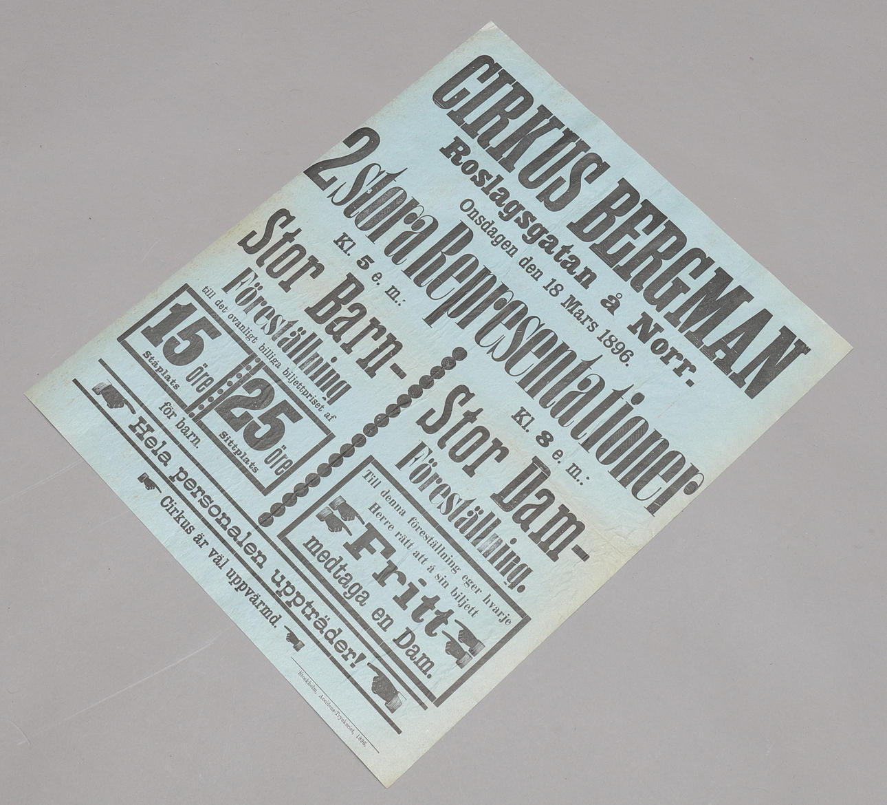 AFFISCH, "Cirkus Bergman", 1896, linnad.
