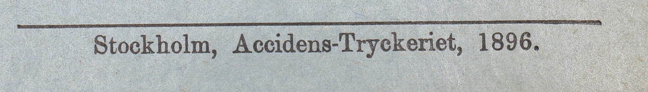 Stockholm, Accidens-Tryckeriet, 1896.