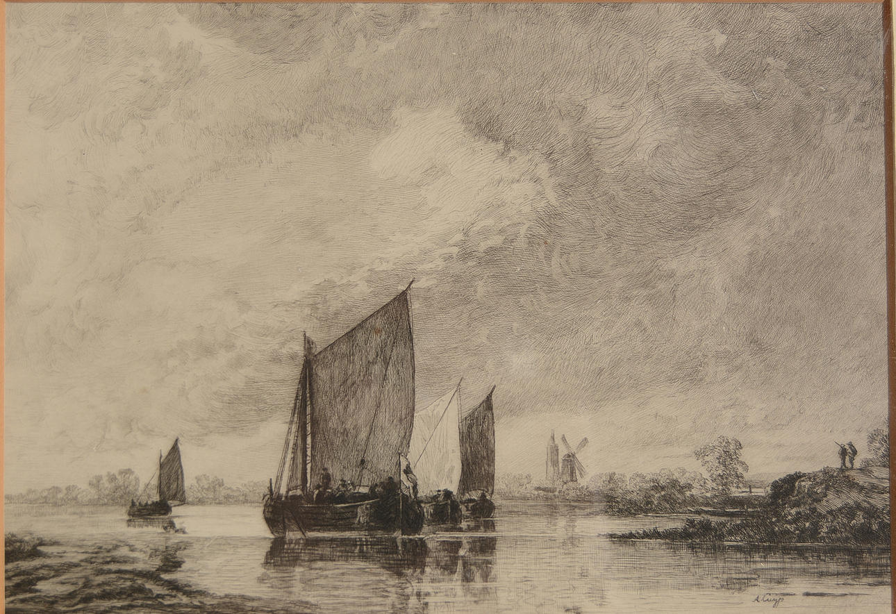 Holländsk kustbild, efter målning av Aelbert Cuyp. 17x24 cm.