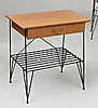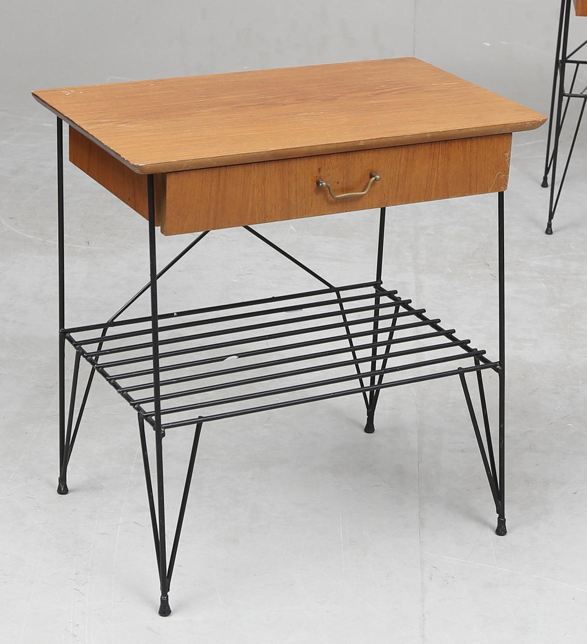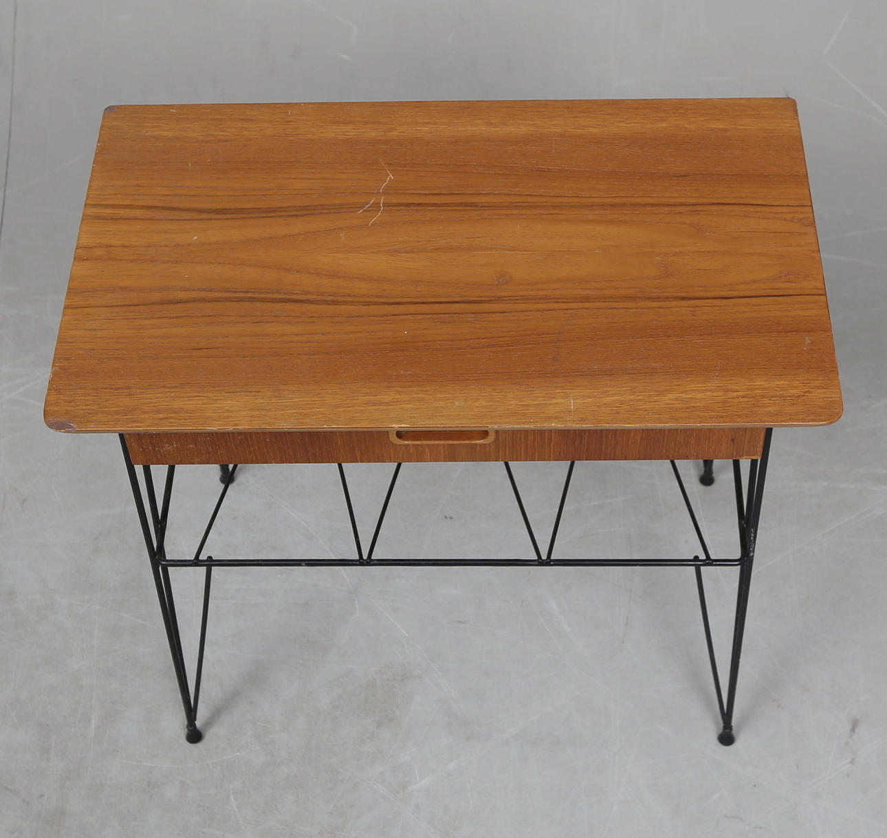 Teak, stringunderrede, lådor, största bord, längd ca. 52, 31, 52 cm.
