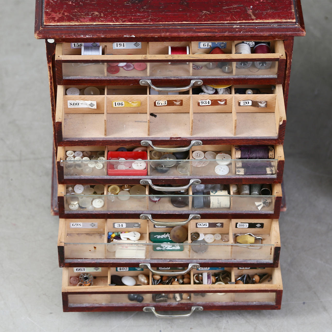 Knappar och sytråd medföljer. (Ej genomgånget.)