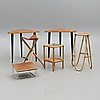 Parbord, höjd 57 cm. Piedestaler, 2 st, bambu och glas, högsta höjd 60 cm. Jägarpall, m.m.