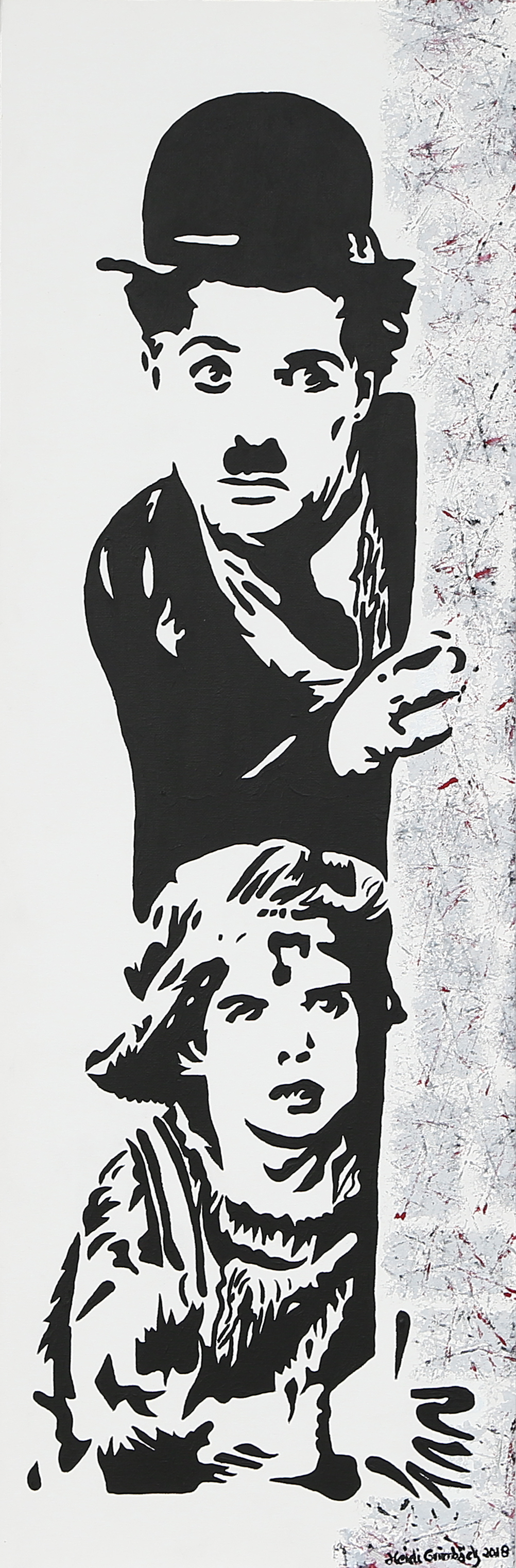 938503. HEIDI GRIMBÄCK. Chaplin, acryl, signerad.