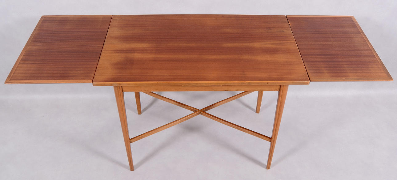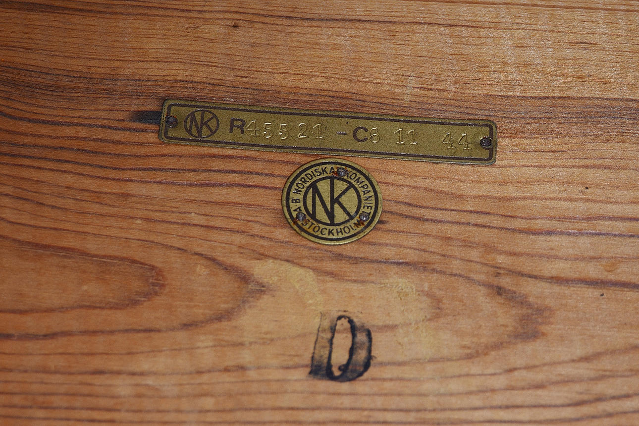 Med utdragbara sidoskivor, 82x50 cm, höjd 62 cm, 2 st utdragbara sidorskivar bredd 33 cm vardera Plakettmärkt NK R45521-C6 11 44.
