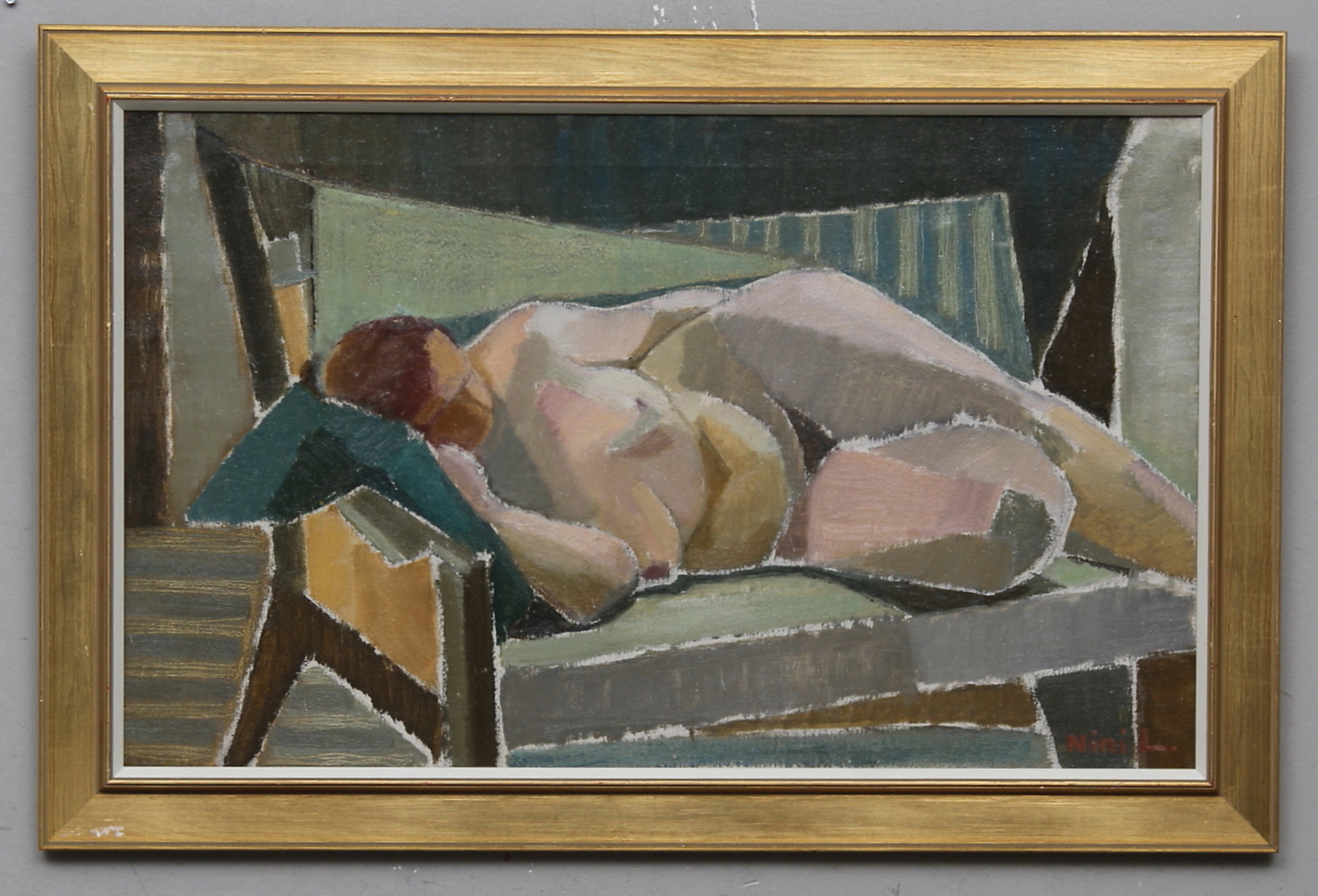 94256. OIDENTIFIERAD KONSTNÄR:. Vilande modell. Sign. Nini L.