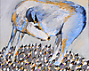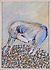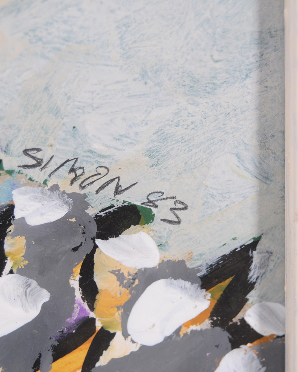 Djurkomposition. Signerad Simon samt daterad -83. 71x55 cm.