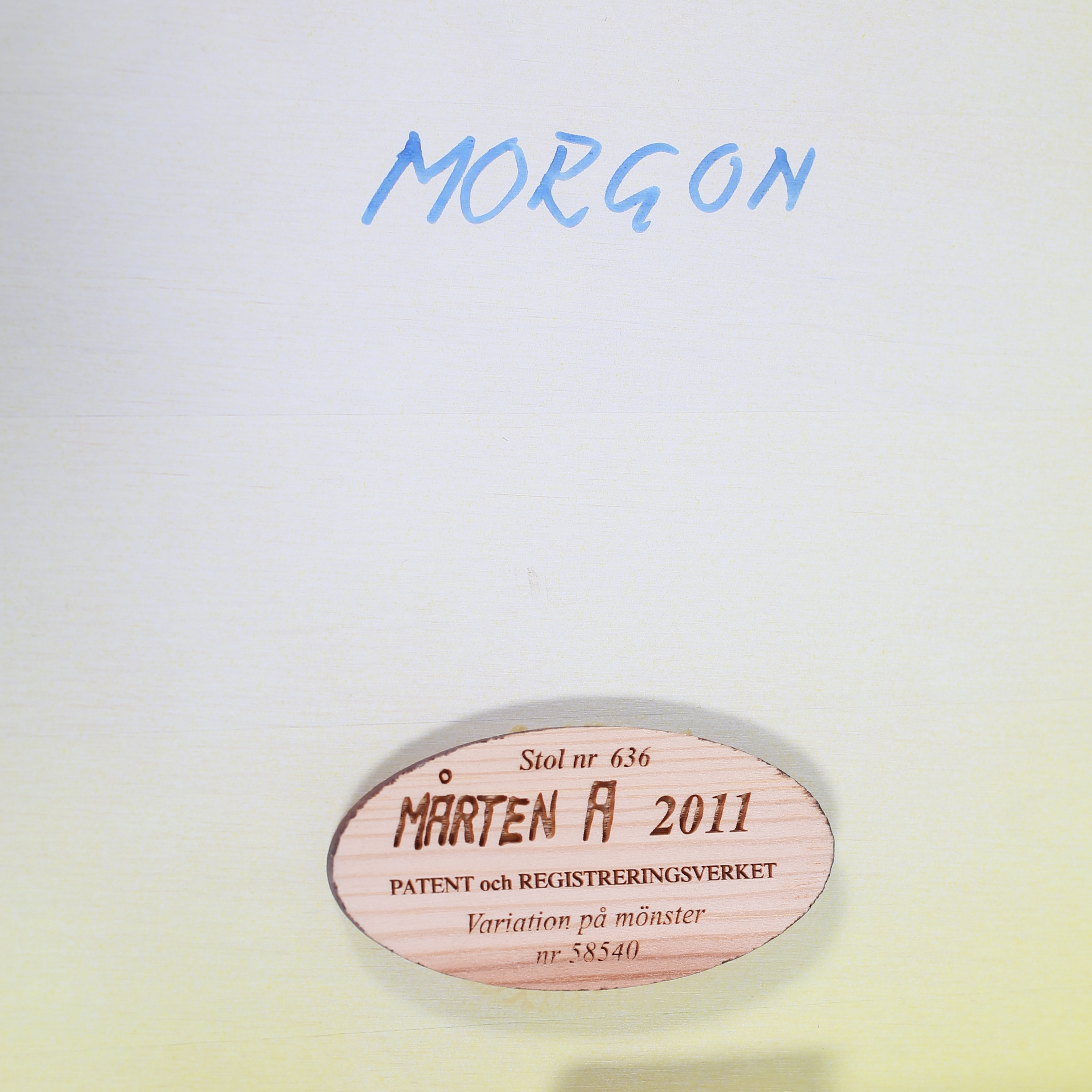 946440. MÅRTEN ANDERSSON. STOL, "Morgon", nr 636, brickmärkt 2011.