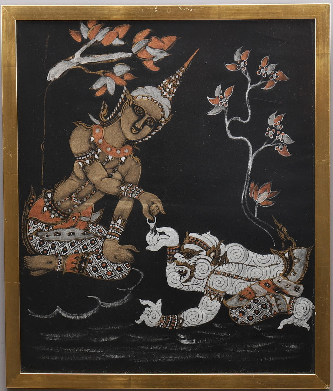 946775. TAVLA, textil/tusch, indisk gud.