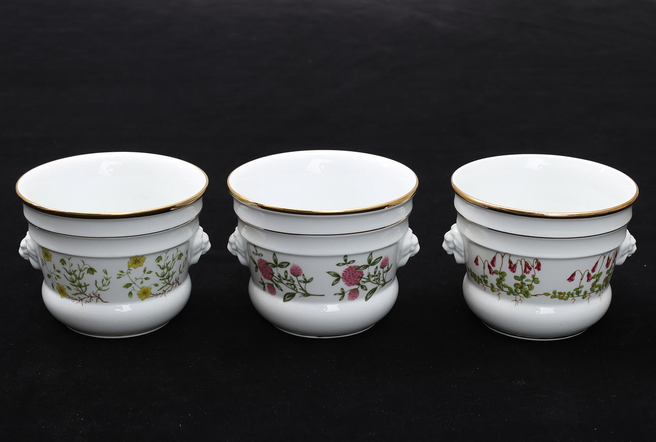 Fyrklövern. Dekor med olika blommor. Höjd 12, diameter 15,5 cm.