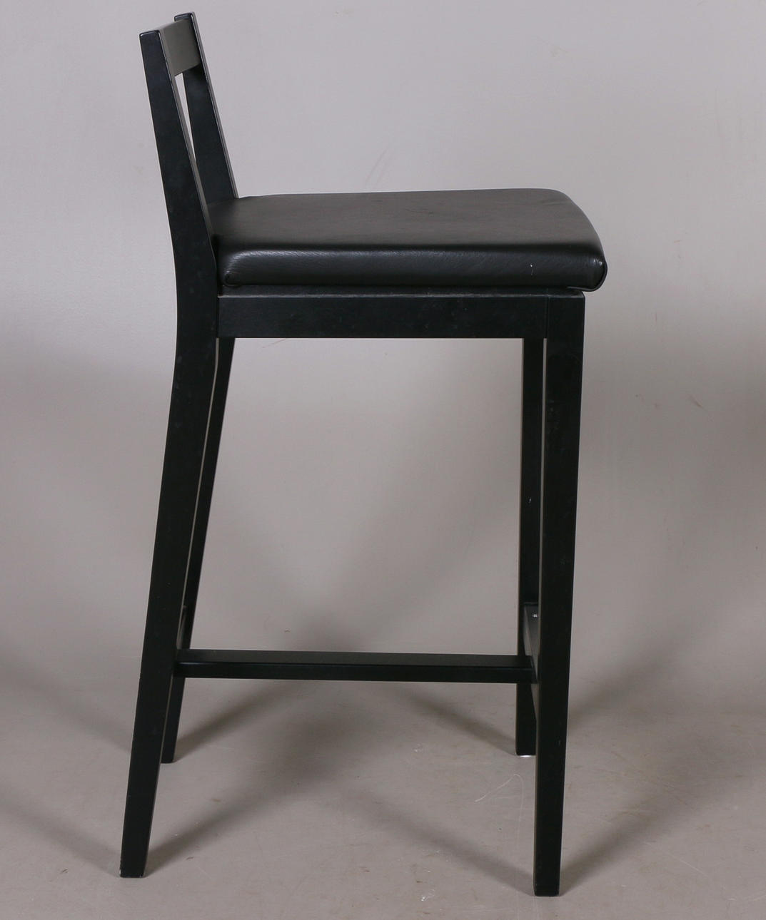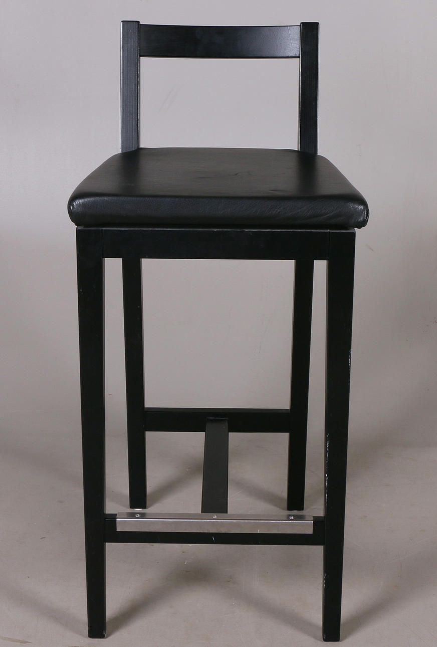 Stol med skinnklädd stoppad sits, fotstöd met metallskena Ryggstödets höjd 85, sitthöjd 67 cm.