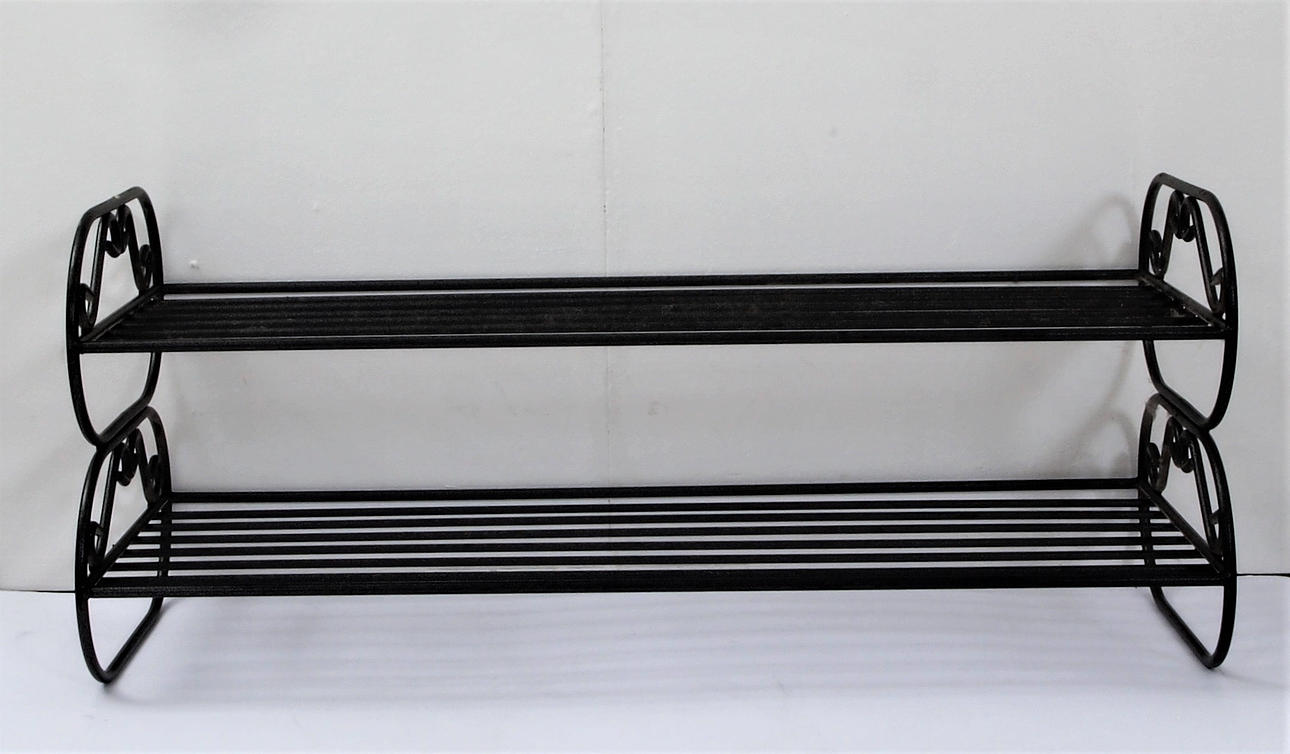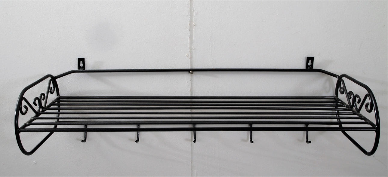 Skohylla i metall, med två plan, hatthylla med hyllplan och krokar