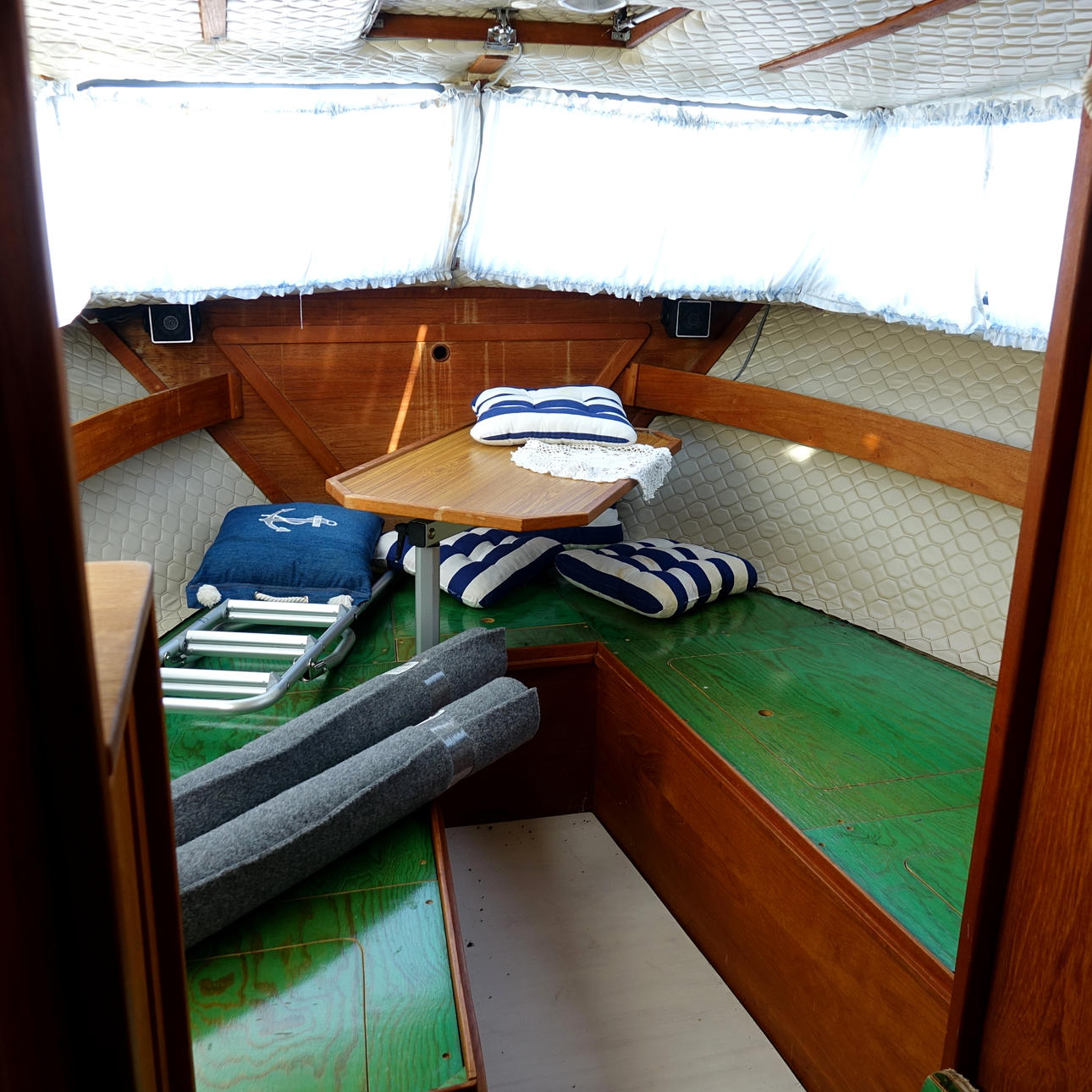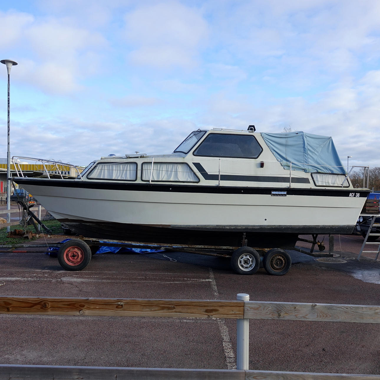 Bedford 300 diesel, 98 hk Hydrauliskt backslag paragon Hydraulisk styrning Spoltoalett (vatten) Solceller Akterruff Hembygd båtvagn medföljer.