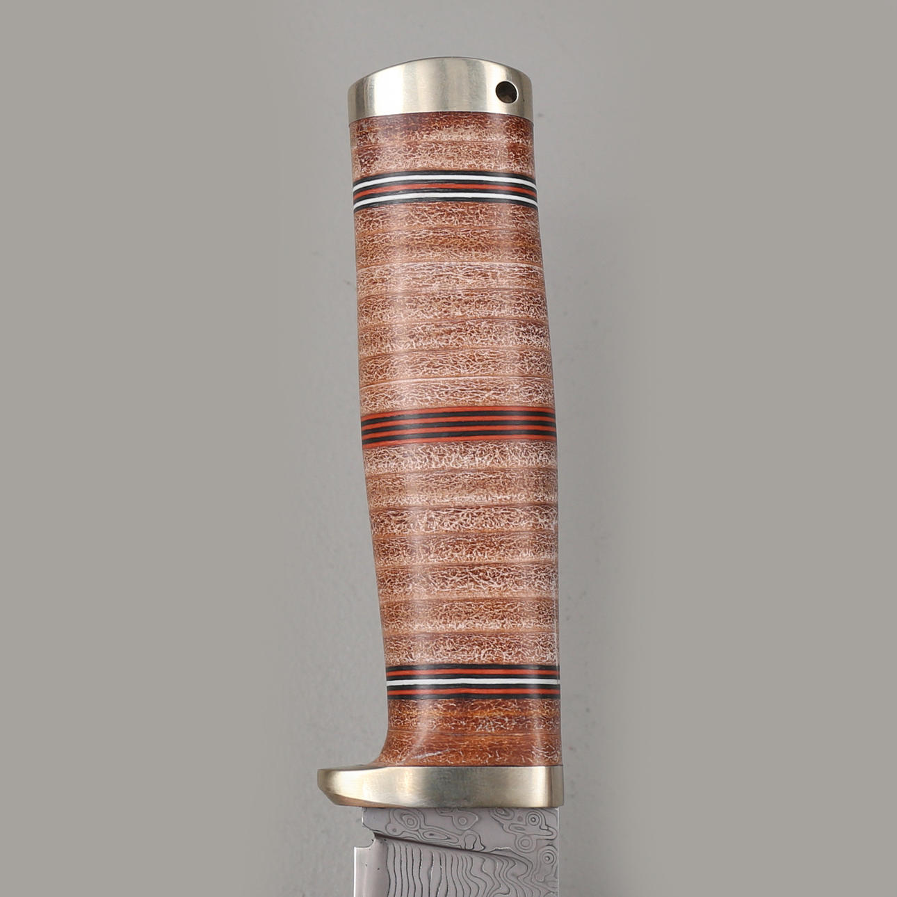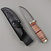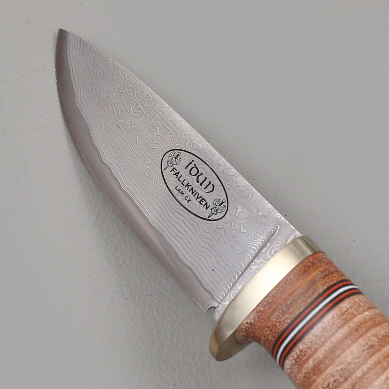 Kniv modell NL5cxL, begränsad tillverkning, Fällkniven. Japansktillverkat fulltångeblad i damaskstål, grepp i lamellläder. Slida i läder. Kommer i presentationslåda.