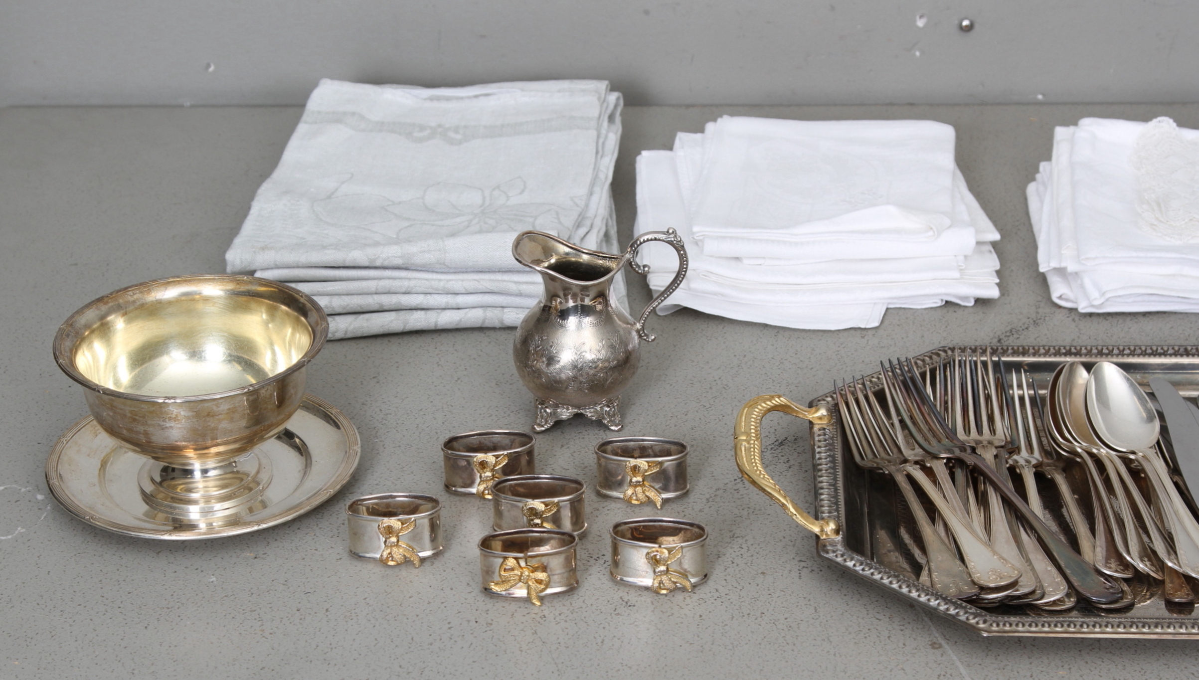 95770. NYSILVERFÖREMÅL samt TEXTIL, 1900-tal.