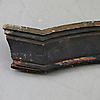 Ålders samt bruksslitage. Maskhål, torrsprickor/skadat trä, färgbortfall.
