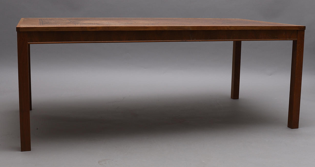 Längd ca 145 cm, bredd ca 79 cm och höjd ca 56 cm. Bronsfärgad yta, träram.