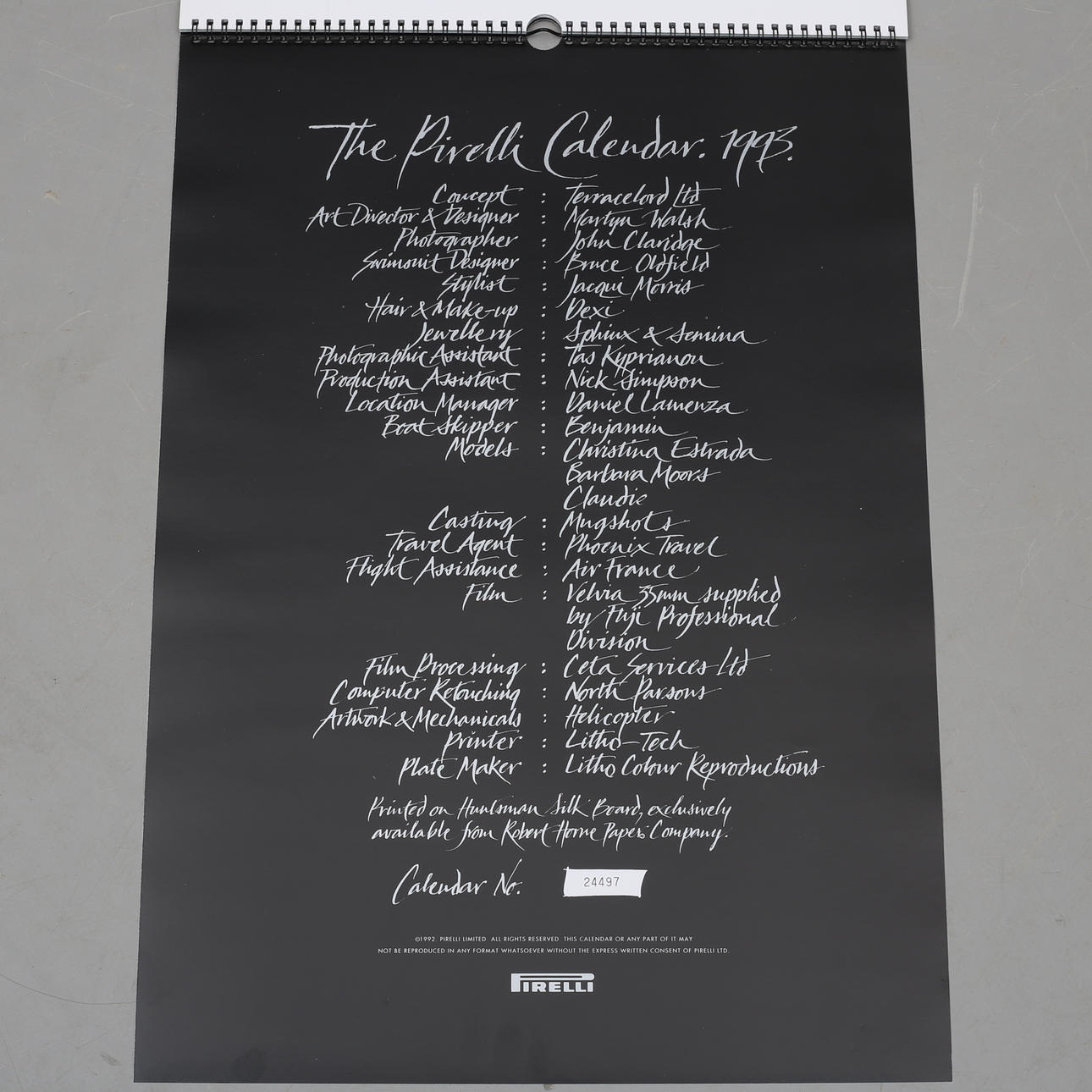 967587. PIRELLI CALENDAR 1993.