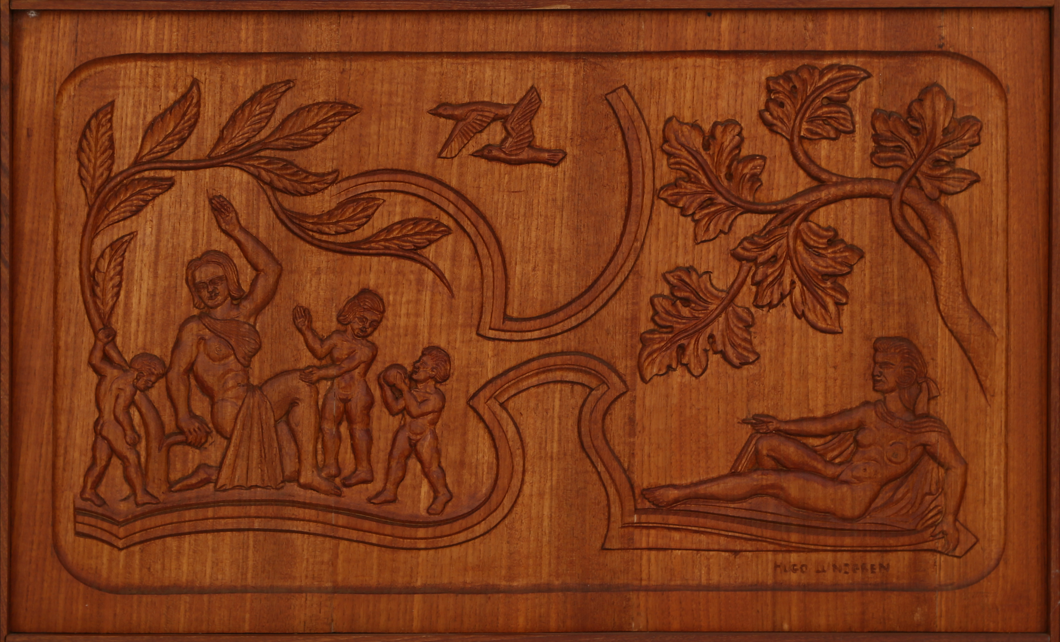 969907. HUGO LUNDGREN. Tavla, trä, signerad.