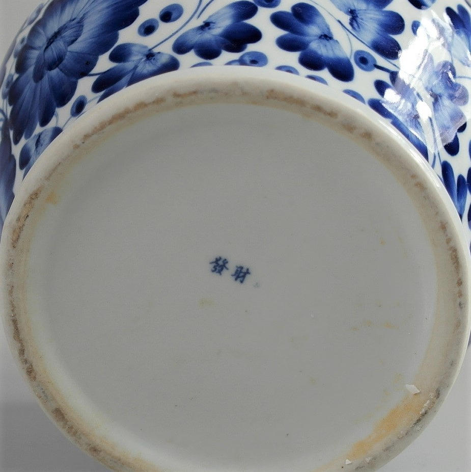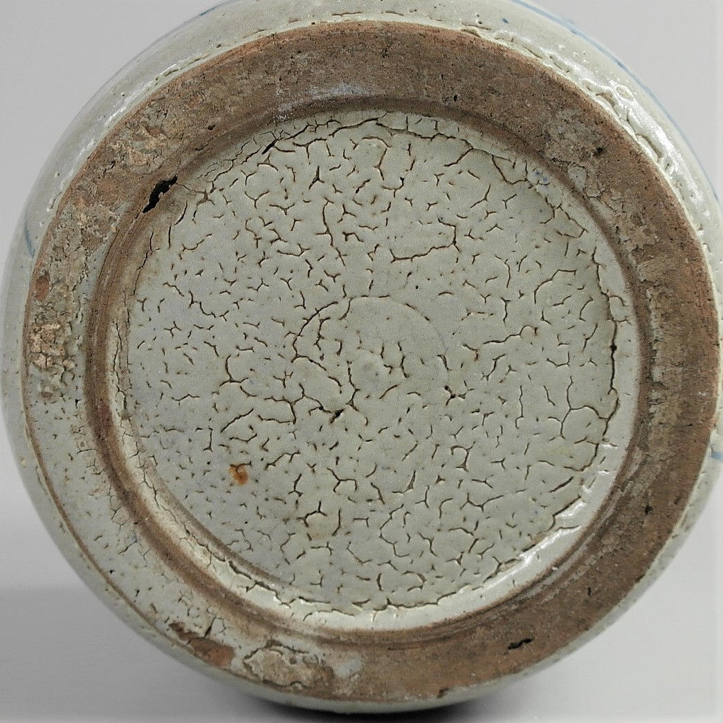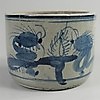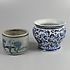 Blå-vitt porslin, 10 cm hög, 13 cm i diameter.