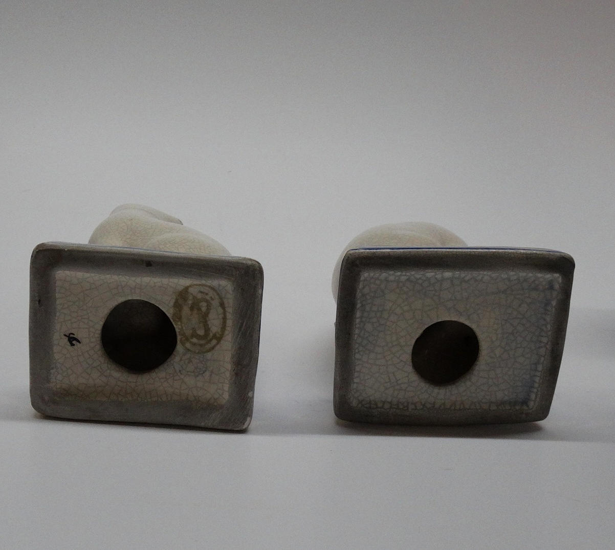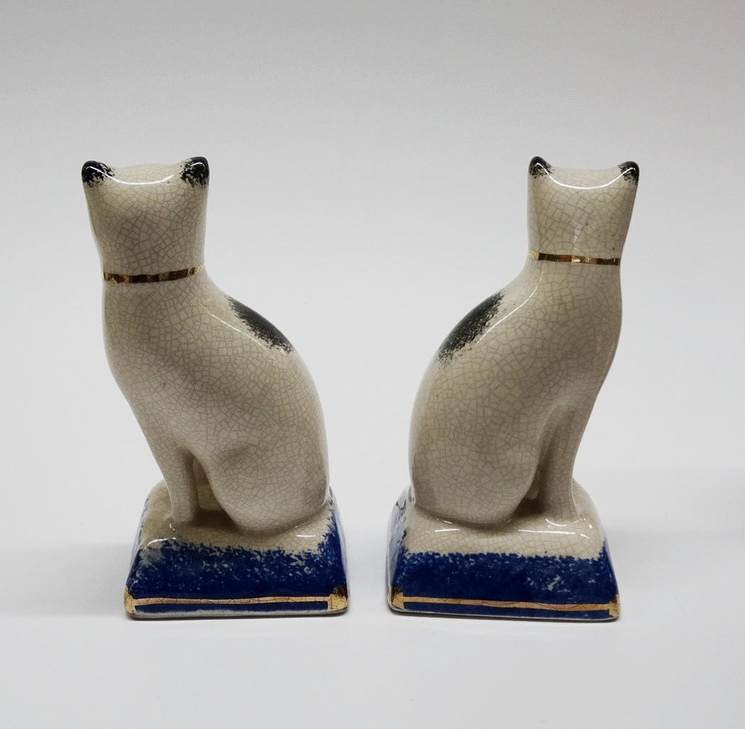 Två porslinsfigurer med kattmotiv, ca 18 cm höga, bottenmått ca 9 x 7 cm.