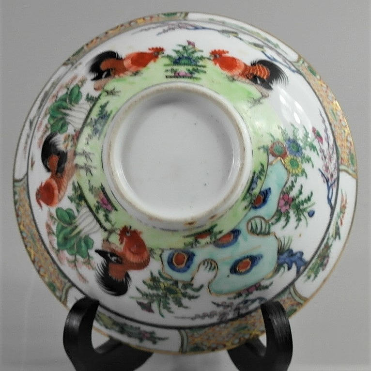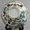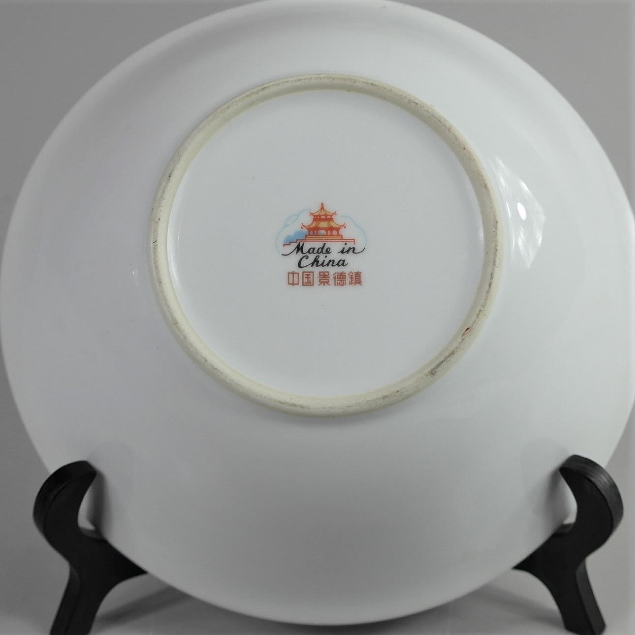 Modern tillverkning. Höjd 6 cm, 20 cm i diameter. Dekor ros.