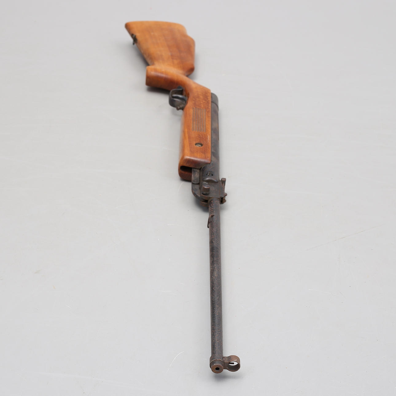Semiprofessionellt luftgevär med pipspärr och ställbart avtryck, kaliber 4,5, märkt F 1128. Längd 109 cm.
