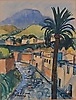 Sydländskt landskap Otydligt signerad samt daterad Santana 1951. 40x30 cm.