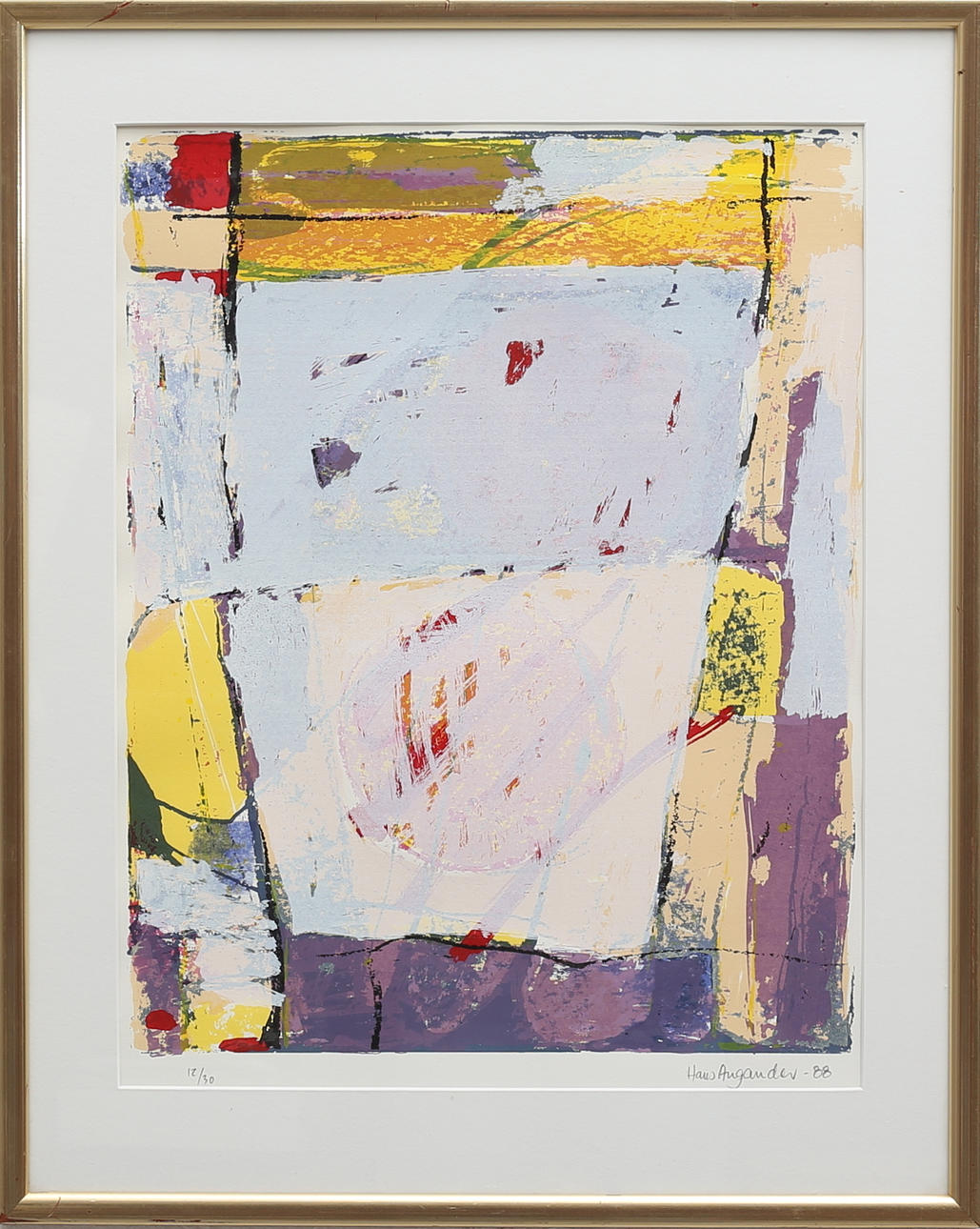 Komposition. Färglitografi, signerad, numrerad 12/30 och daterad -88, mått inom passepartout 49 x 38 cm.