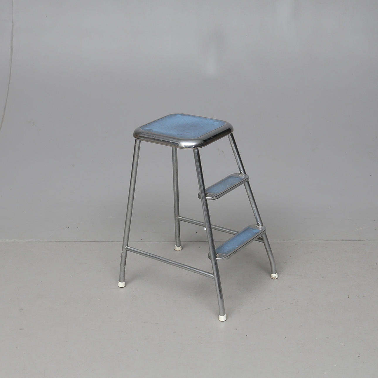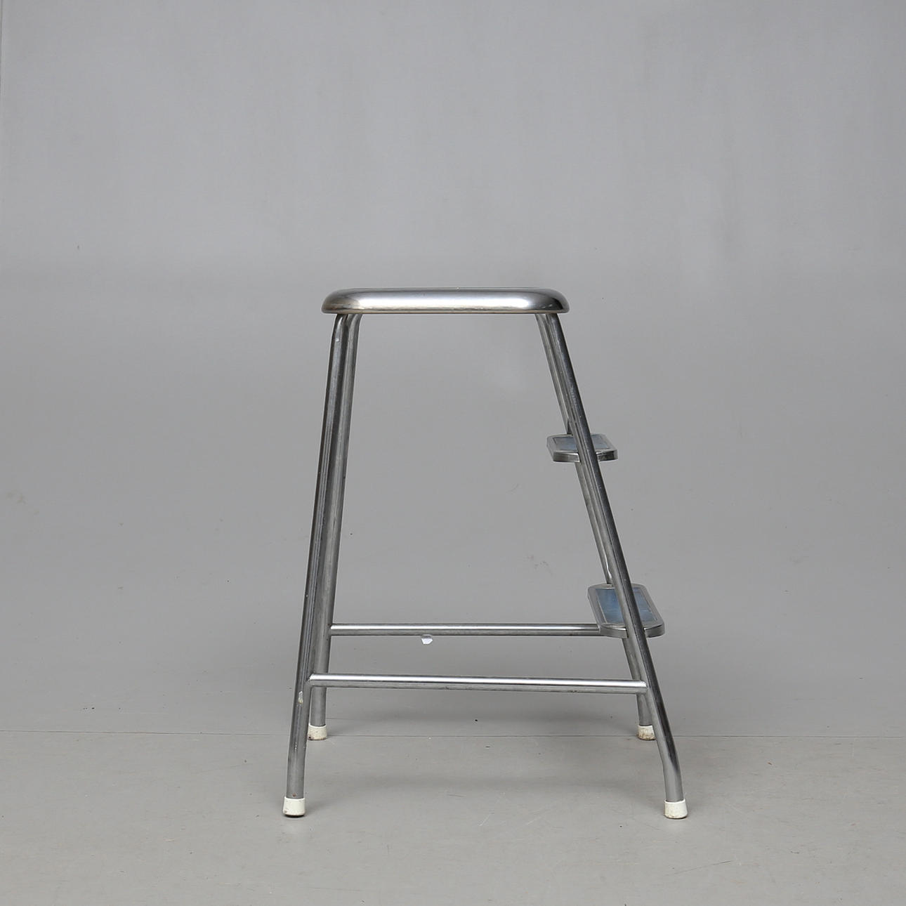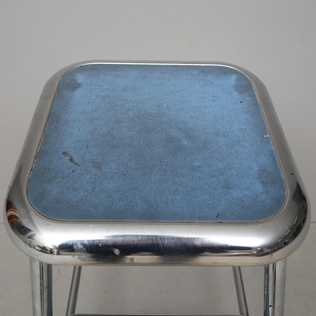 Kromad metall. Sits och steg med laminat. Höjd ca 59 cm.