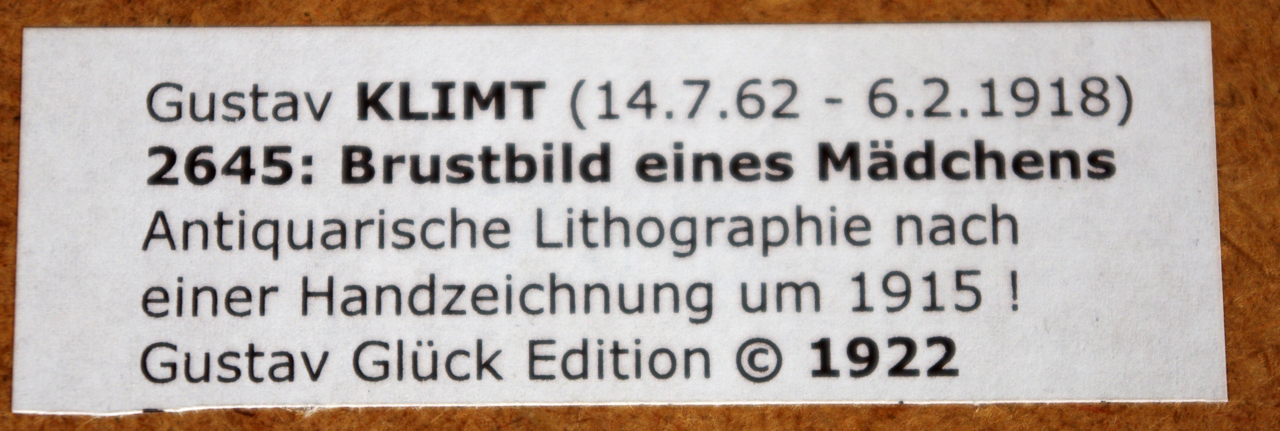 97543. GUSTAV KLIMT. Efter. Flickporträtt, antikvarisk litografi efter teckning.
