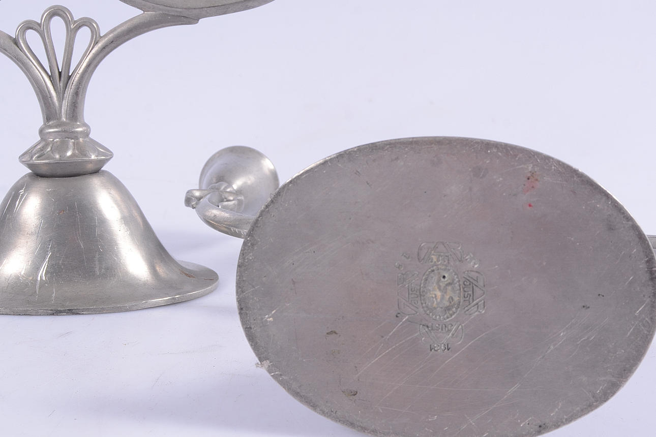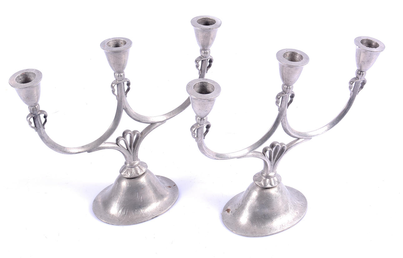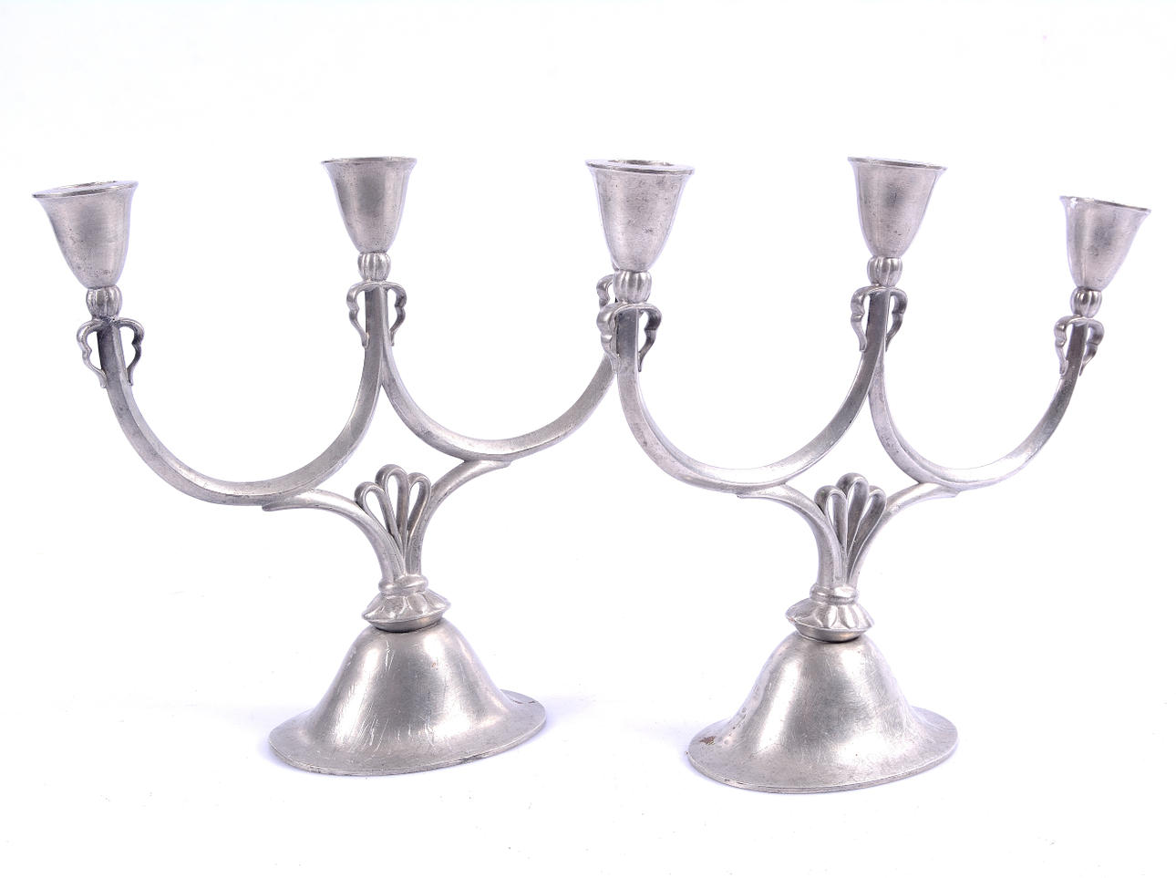 KANDELABRAR, ett par, tenn, Just Andersen Danmark.