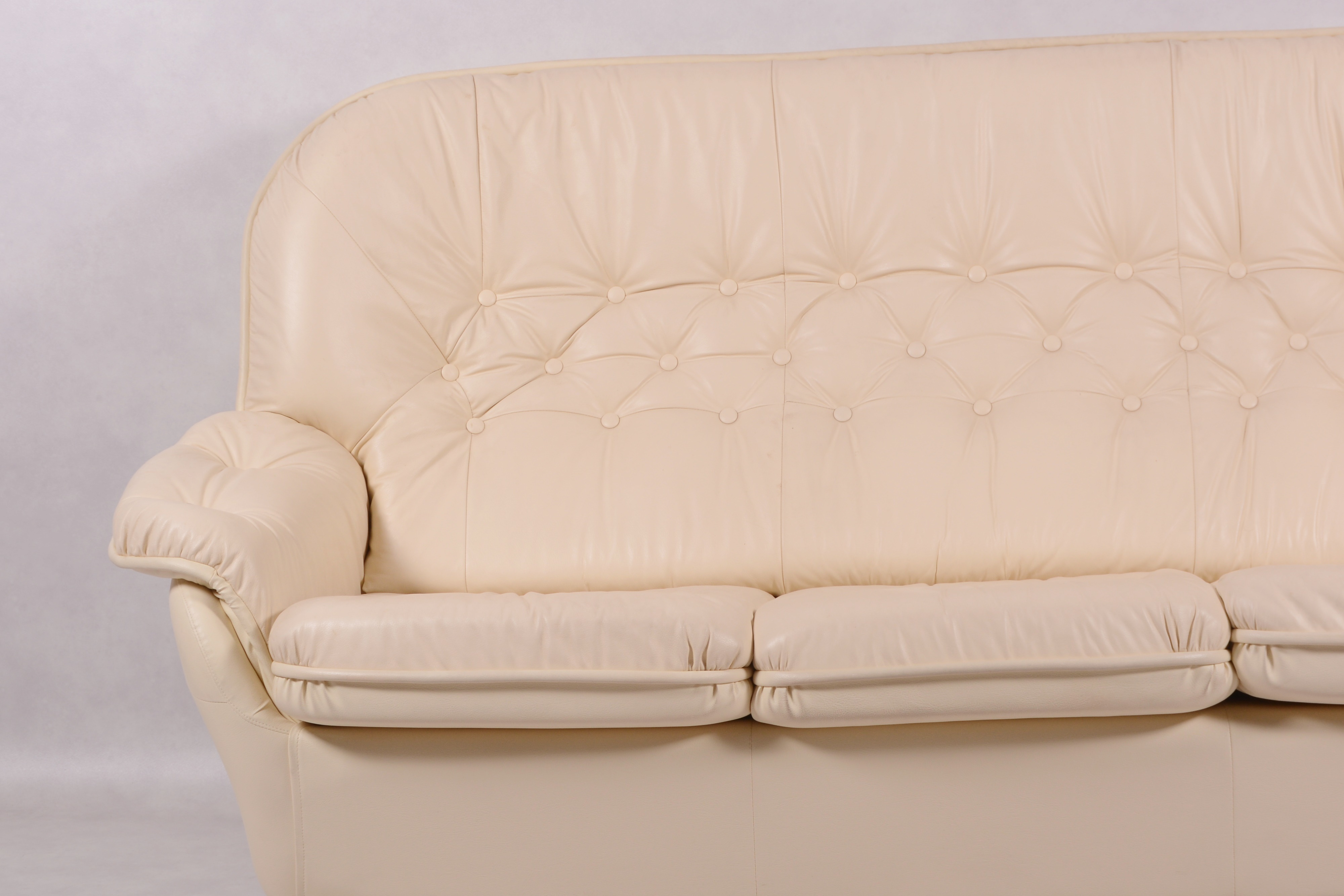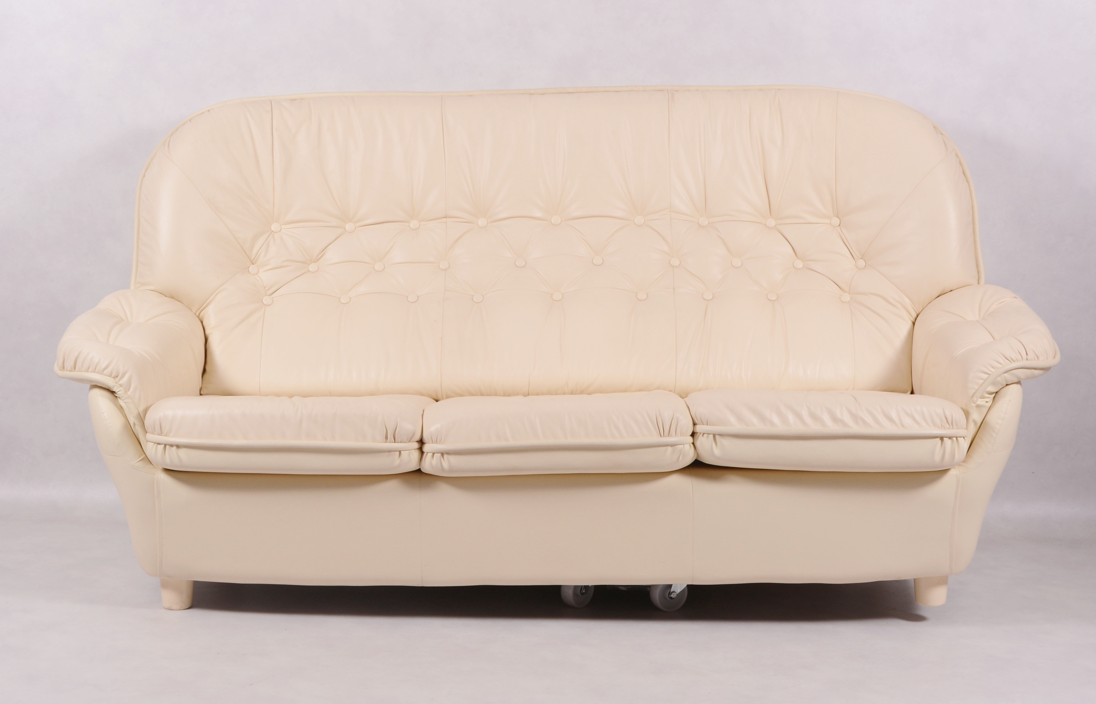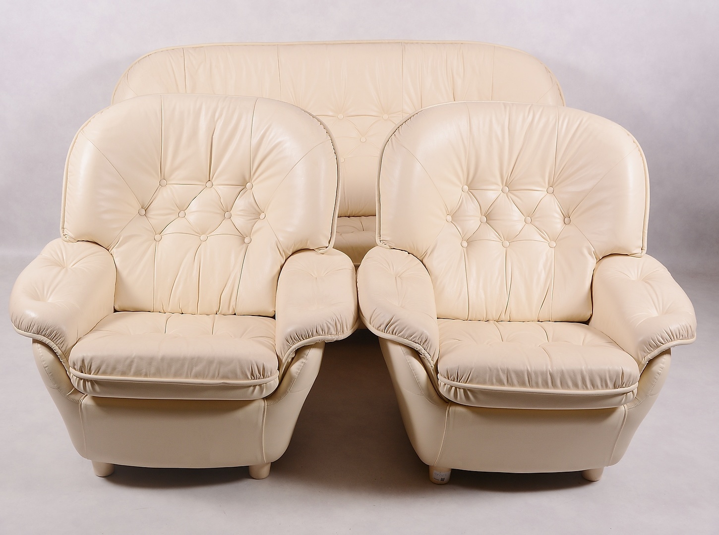 983003. SOFFGRUPP, 3-delar, beige, läder samt konstläder, modern tillverkning.