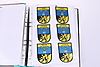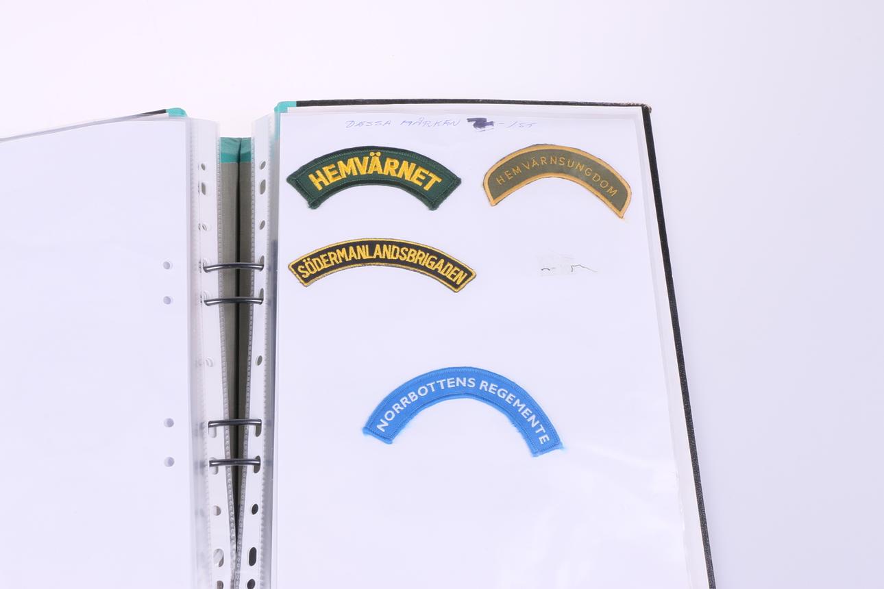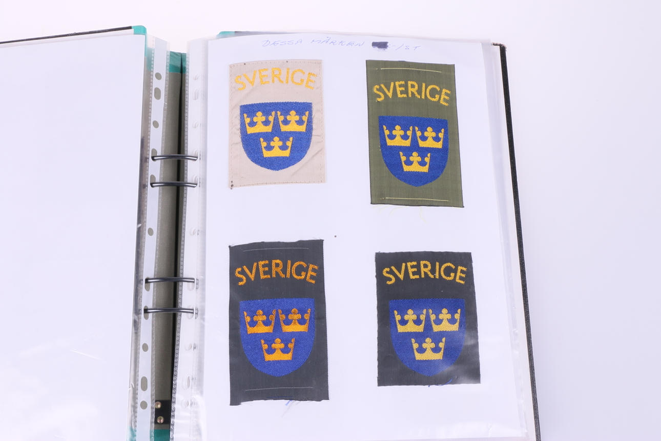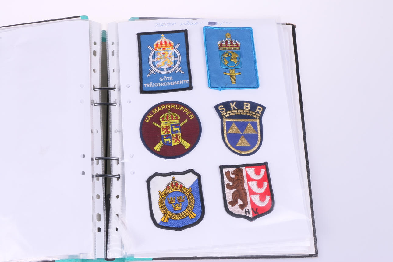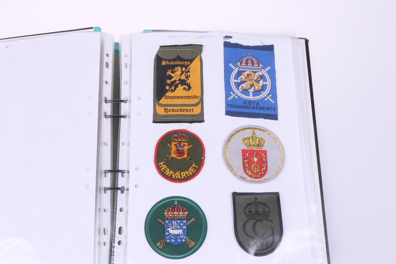 46 tygmärken från militär. Sitter i pärm.