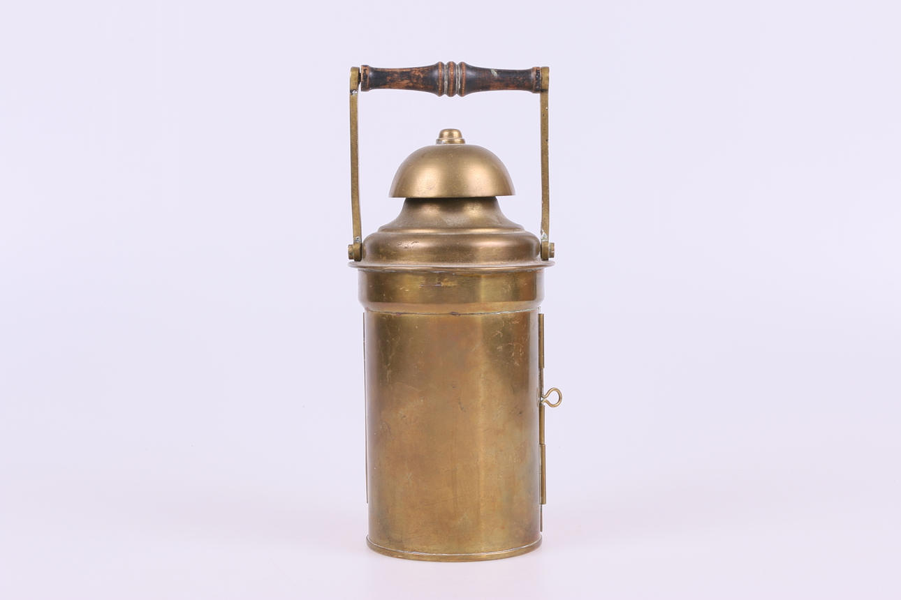 Lykta med handtag i trä. Brännare märkt Trademark Bartons Patent", höjd 25 cm.