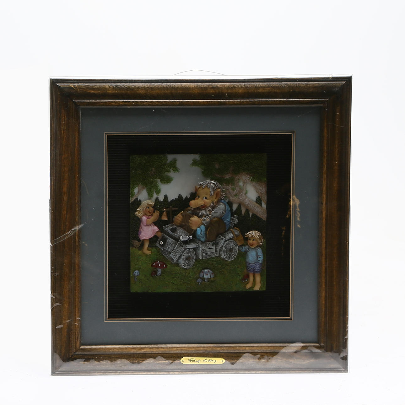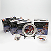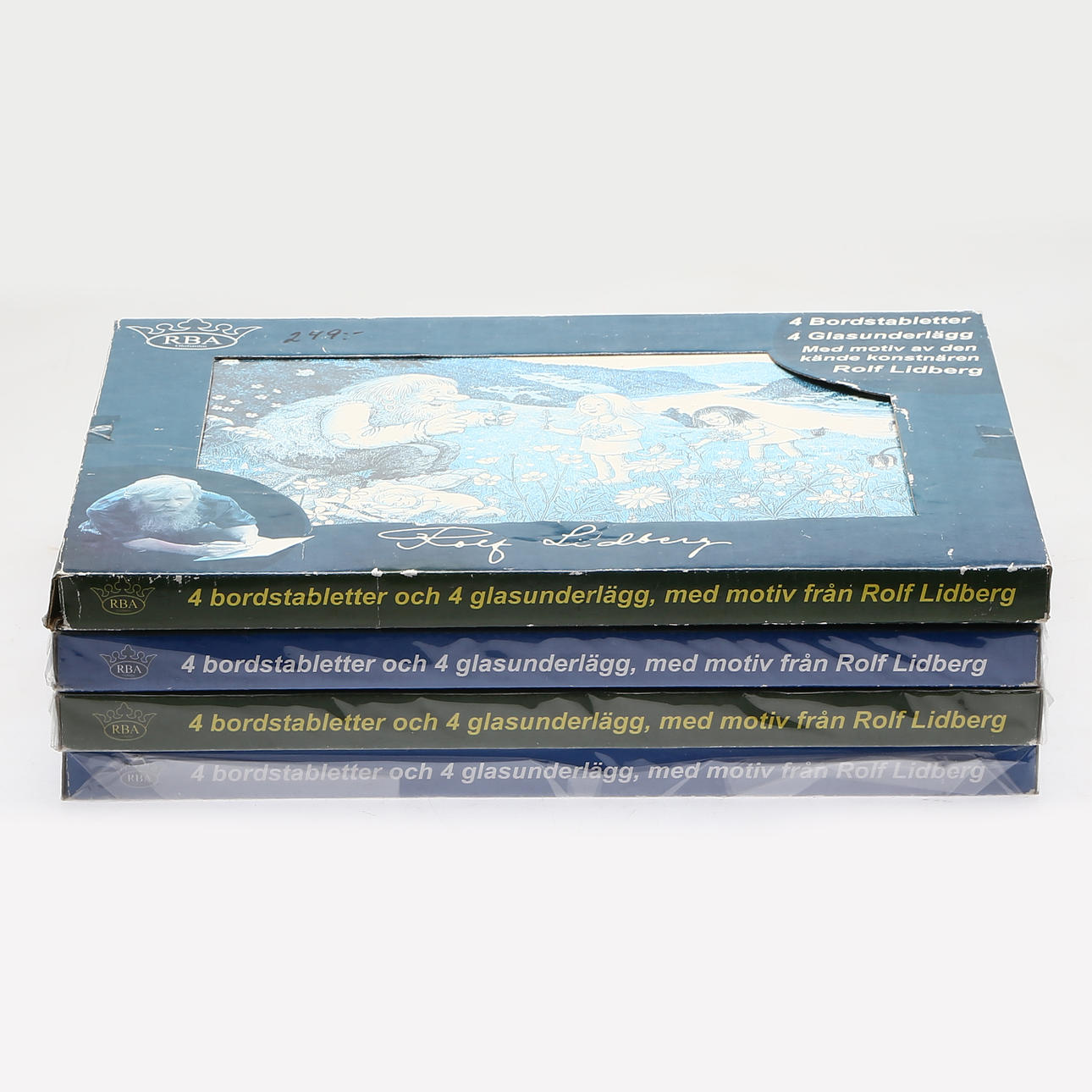 4 kartonger, barnserviser 4 kartonger med glasunderlägg 1 tavla med trollmotiv.