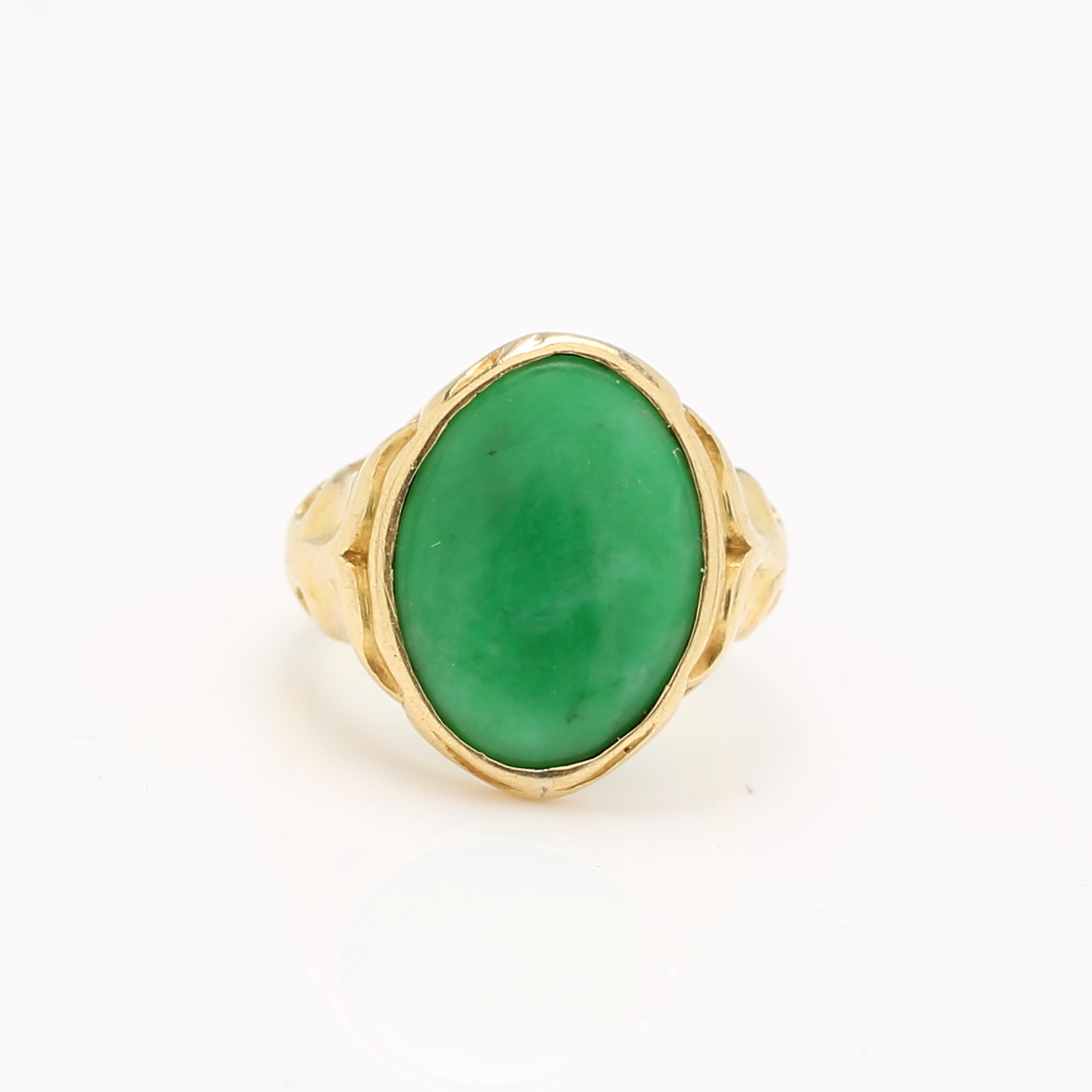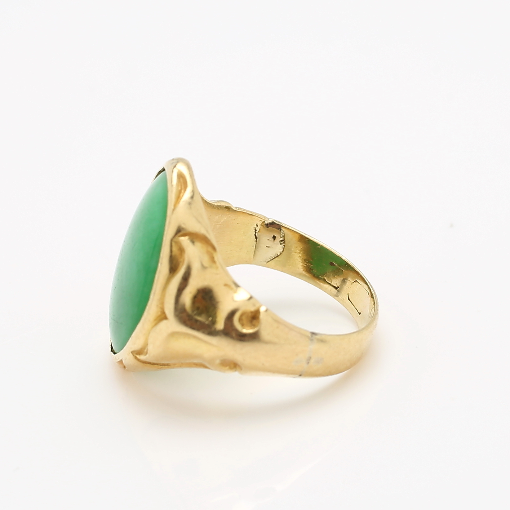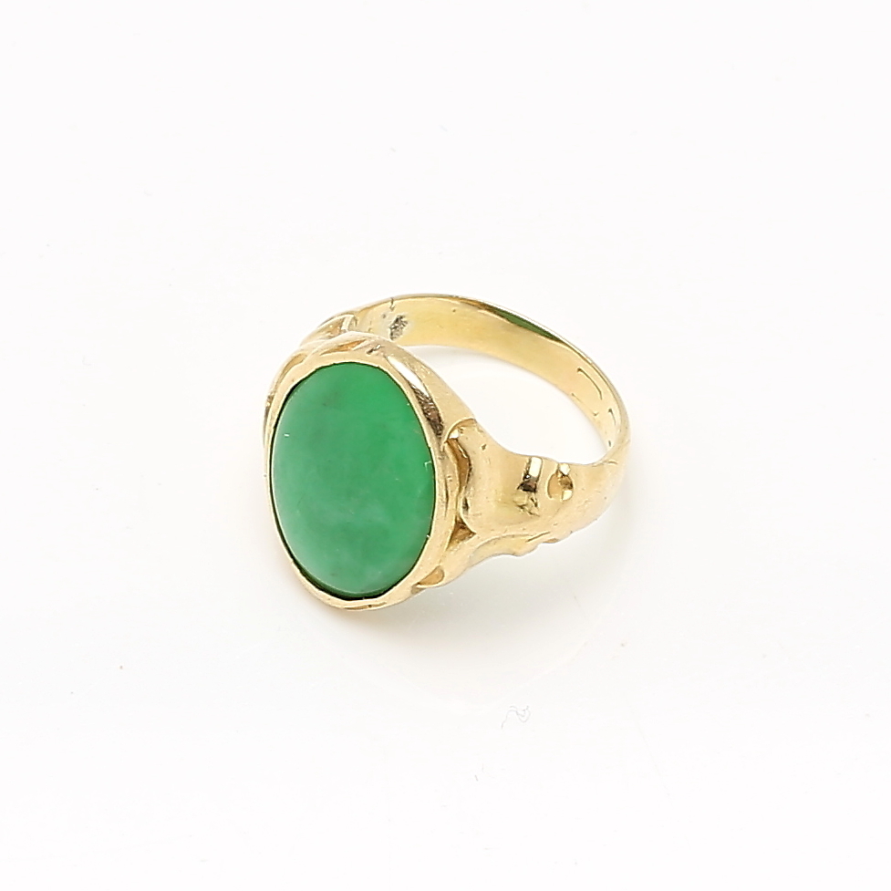 987798. RING, 18K guld samt jade. Totalvikt ca 6,3 g.