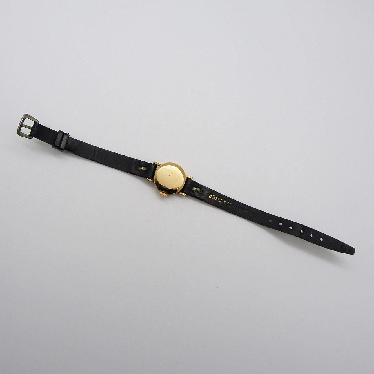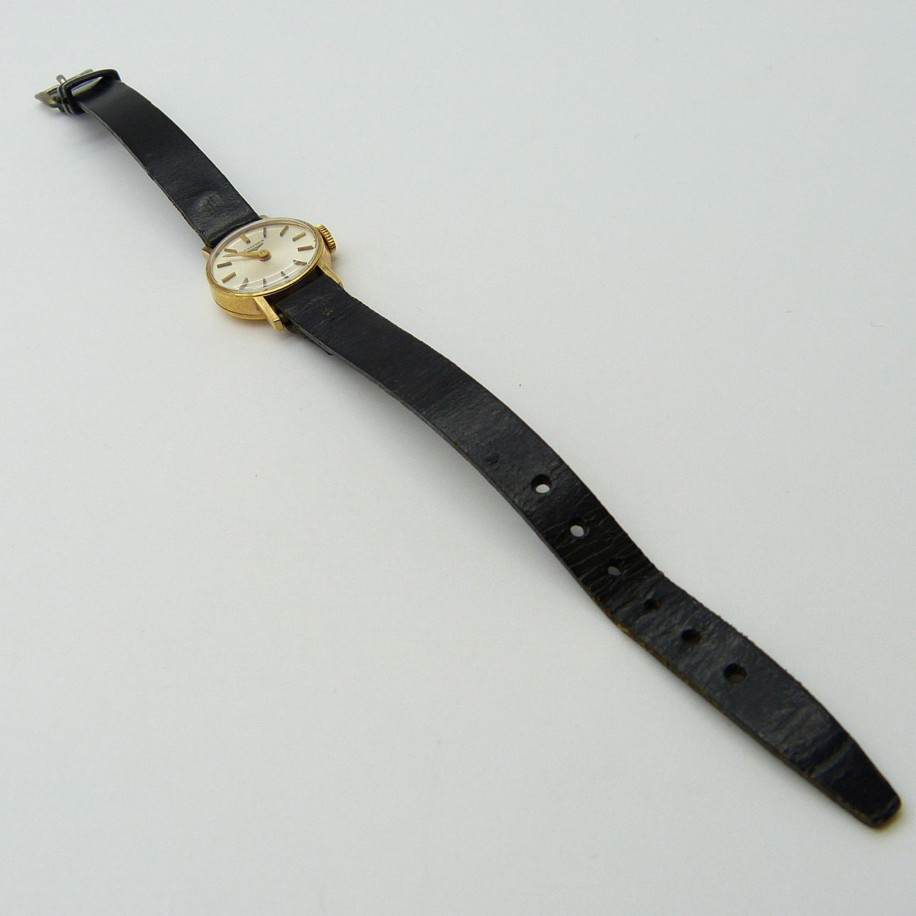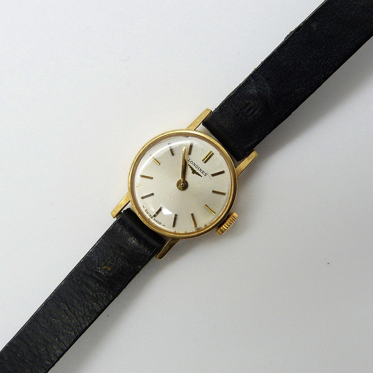 En äkta, Schweizisk tillverkad, 9k gult guld, manuell lindning, damvintage Longines armbandsur.