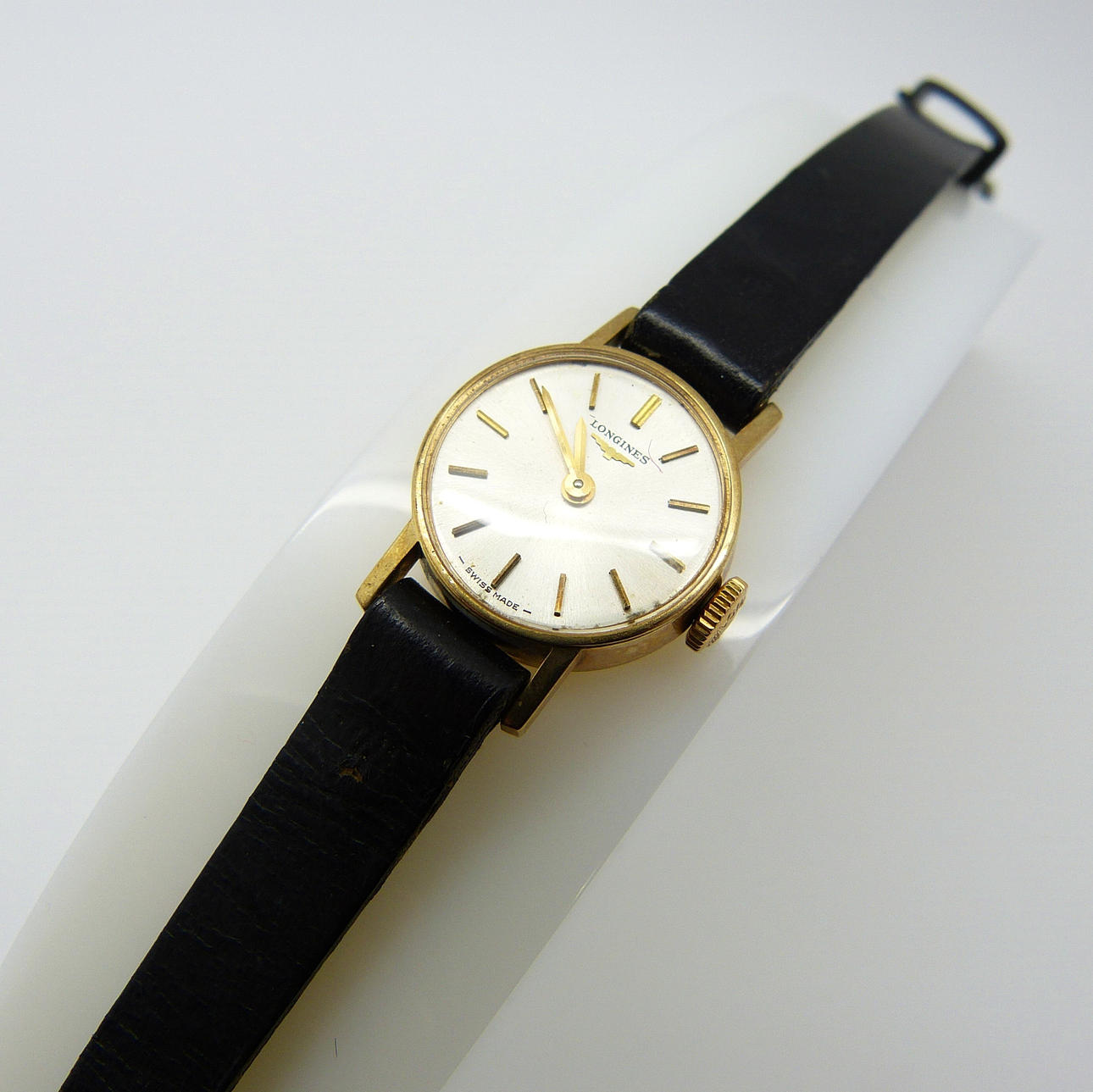 Denna vintage Longines klocka har en 17 juvel mekanisk avveckla schweizisk rörelse.