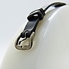 Denna klocka har en justerbar svart läderrem med metallspänne.